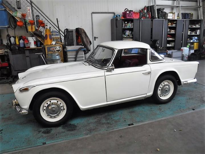 Heel goede, gave 1967 Triumph TR4 A. Met goed lopende originele motor, gave vloeren, perfect chassis. Goed rijdend. Auto is ingevoerd in Europa, alle kosten zijn betaald. Deze mooie TR4A komt met de hard en soft surrey top, wel heel bijzonder en prettig om zo open te rijden.Grote keus in ECHTE klassiekers in de Stolze Collectie: van project tot perfect !
