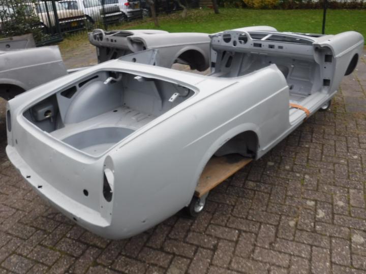 Fiat 1200 Cabriolet body met links vóór schade evt ook een goede neus te leveren . Eventueel ook delen te leveren om er een meer complete auto van te maken. ch # Fiat 118G*017557*