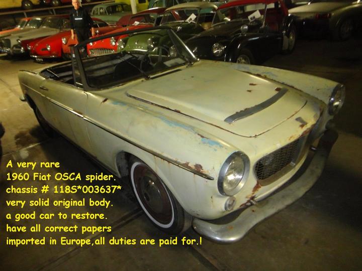 Een zeldzame Fiat OSCA Spider om te restaureren. Een goede solide originele body met gereviseerde OSCA motor. Een goede auto om te restaureren. Met alle correcte papieren, de import belasting voor Europa is betaald. Grootste keus in ECHTE klassiekers in "de Stolze Collectie"! Van project tot perfect.!