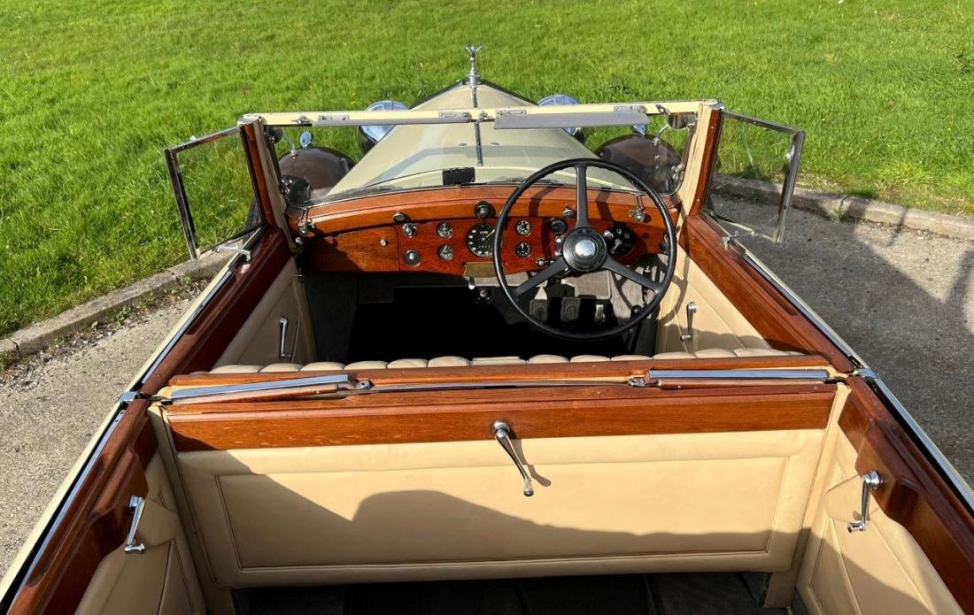 An unusual, very stylish & possibly unique open car, of an interesting and particularly handsome design, being relatively sleek, with spats to the rear wheels, quarter bumpers to the rear, twin side-mounted spare wheels, louvred bonnet & scuttle and ‘dropping’ waistline moulding; all complimented by a correct set of lamps and long trumpet horns. All six wheels are fitted with Ace wheel discs, which we feel suit the design nicely. The car is in good, smart condition, the paintwork, chrome work, leather are all very good and nicely presented, the coachwork is good structurally with excellent door fits, etc. It has recently been fitted with a new cylinder head and is smartly presented under the bonnet. According to the factory records, the paintwork was originally light green throughout with "speckled grey leather and hood material to match". Amongst the documents in the car's history file are several photos taken when new, as well as original sales documentation, Jack Barclay invoices, etc. All in all, a rare opportunity to acquire 'something different'. Offered serviced, prepared, running nicely, driving well and MoT tested.