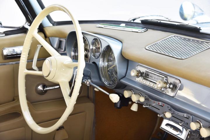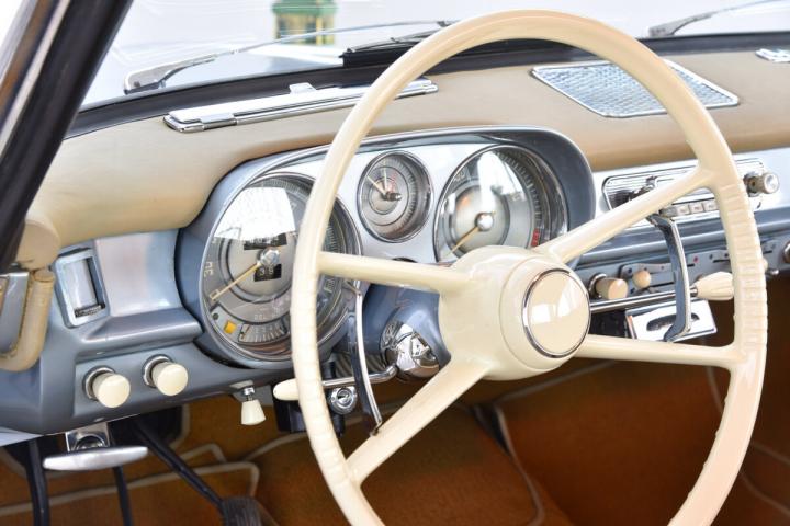 A total of only 412 examples were built between 1956 and 1960, largely due to the very high price of 29,500 DM. In December 1957, a model update was carried out. The most visible change is the side chrome trim now no longer curved upwards at the rear, technically, among other things, the transmission was flanged directly to the engine and a stick shift was used.