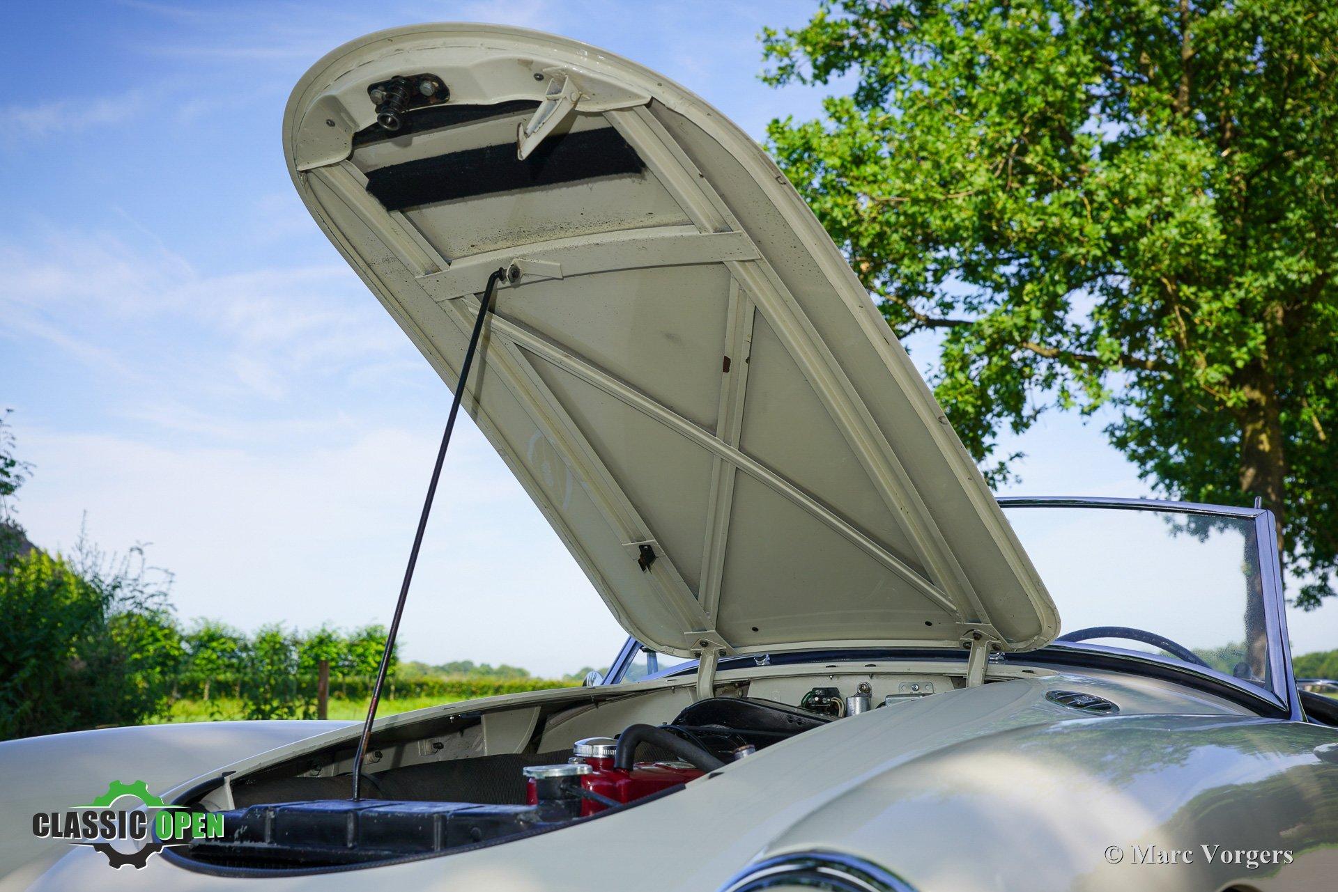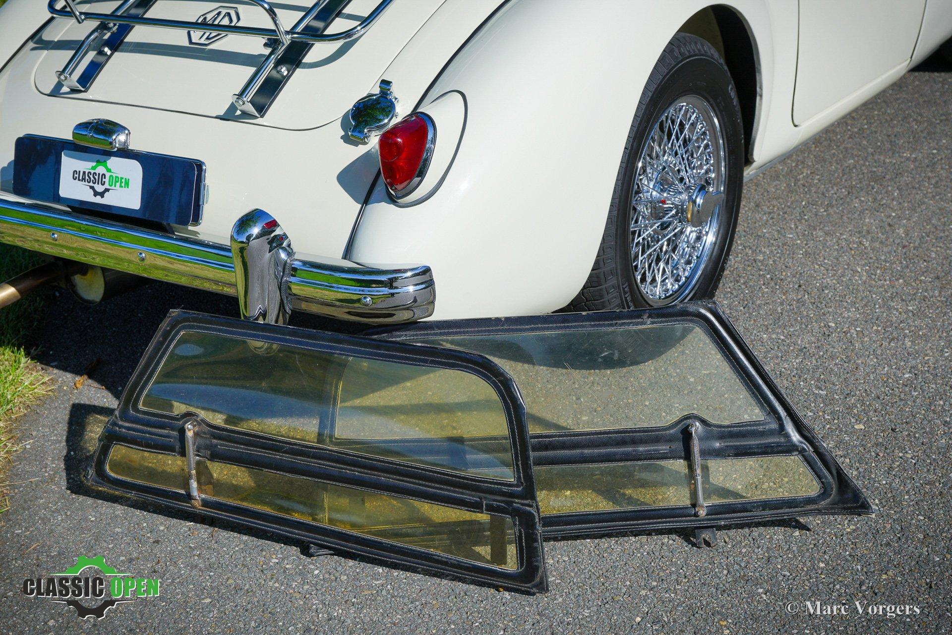 Deze MGA is voorzien van prachtige chromen spaakwielen, extra Lucas sft575 mistlampen, een chromen bagagerek, een zeer handig accessoire achter de stoelen om de zijruiten in op te bergen, en een klassieke Blaupunkt Frankfurt autoradio met FM!