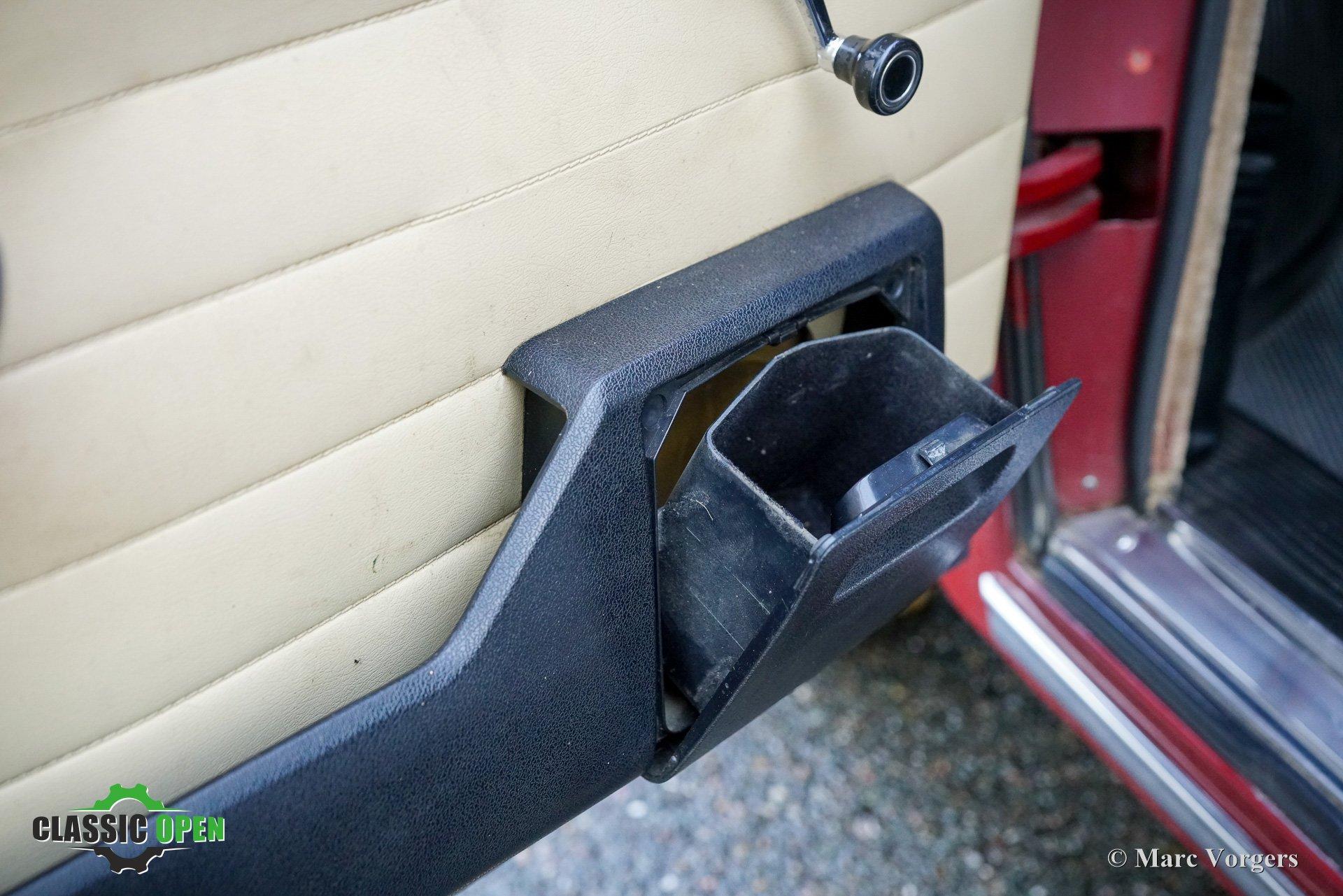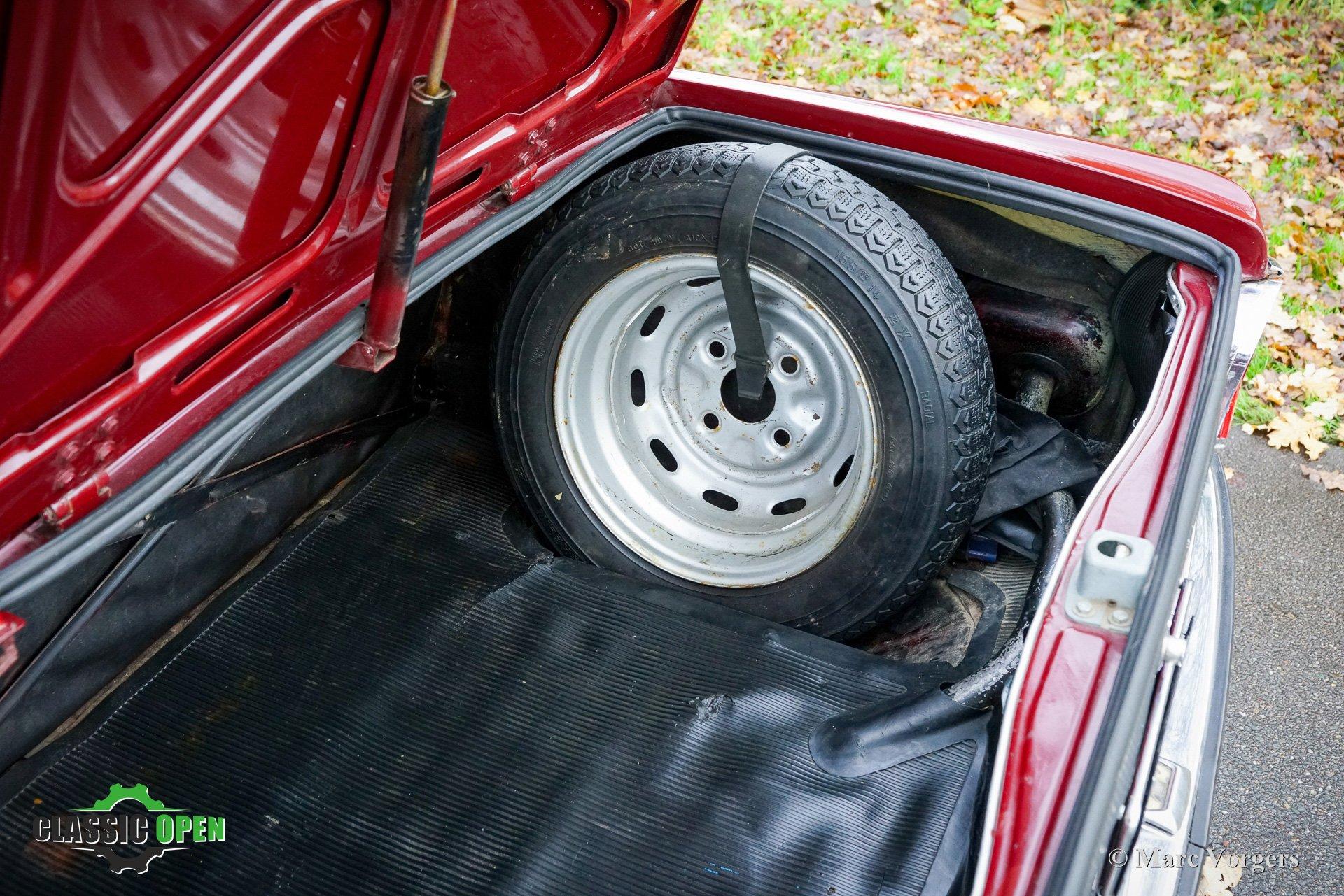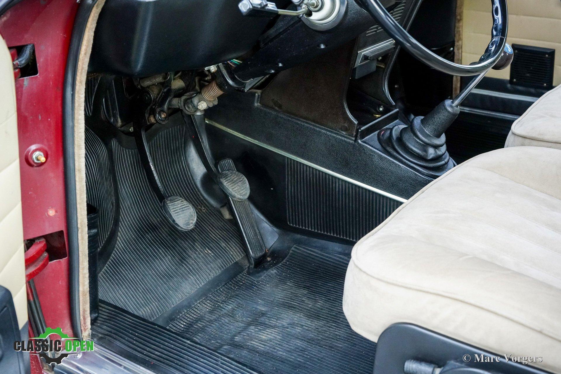 Eerste registratie 1975. Kleur donkerrood gecombineerd met een beige stoffen interieur.