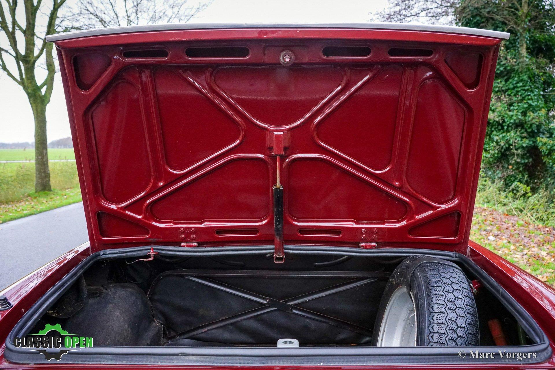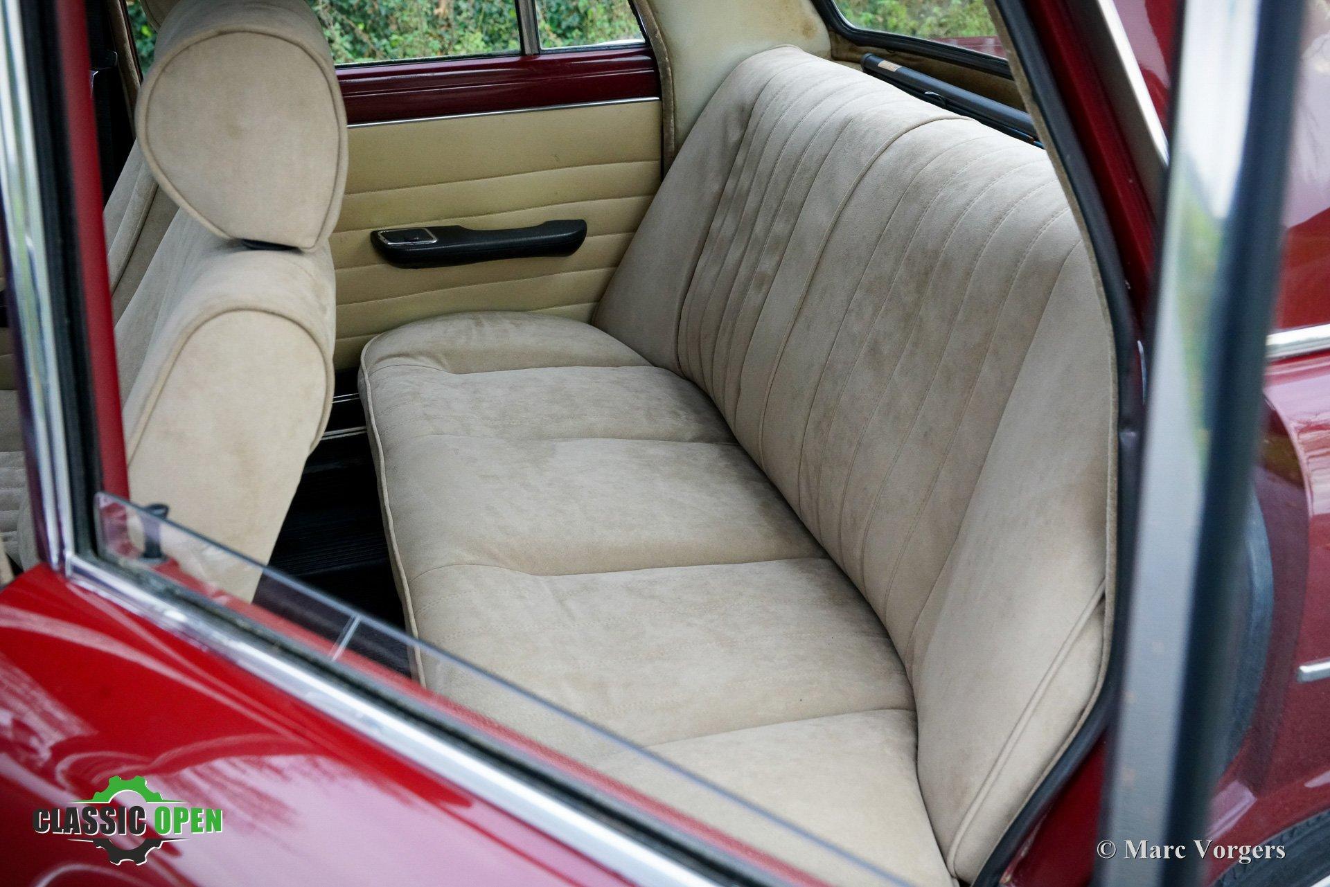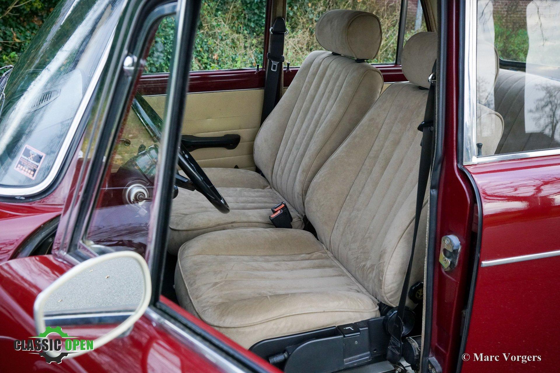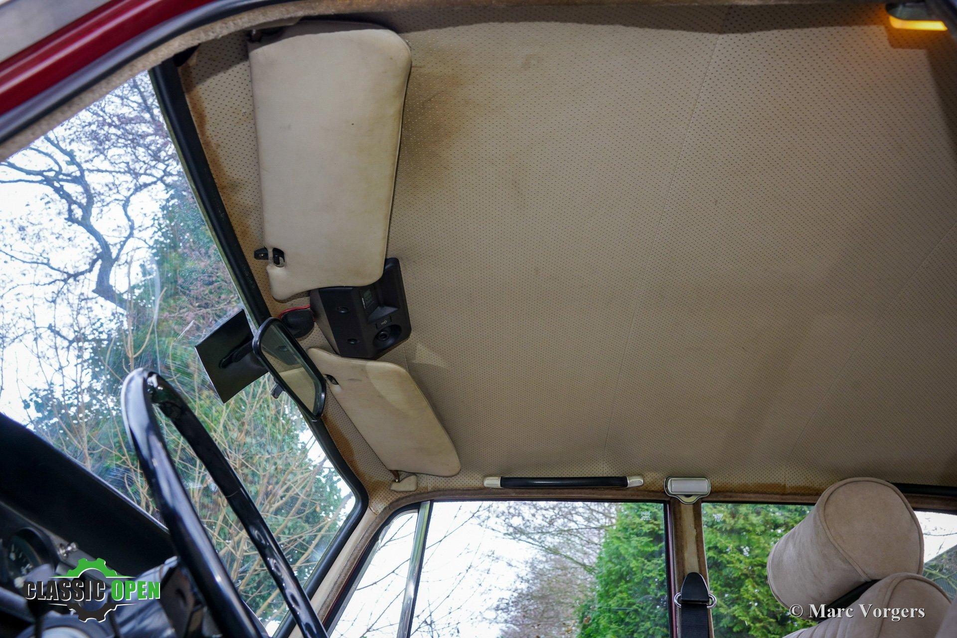 Eerste registratie 1975. Kleur donkerrood gecombineerd met een beige stoffen interieur.