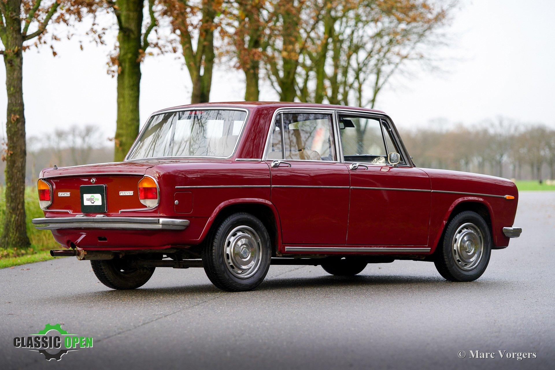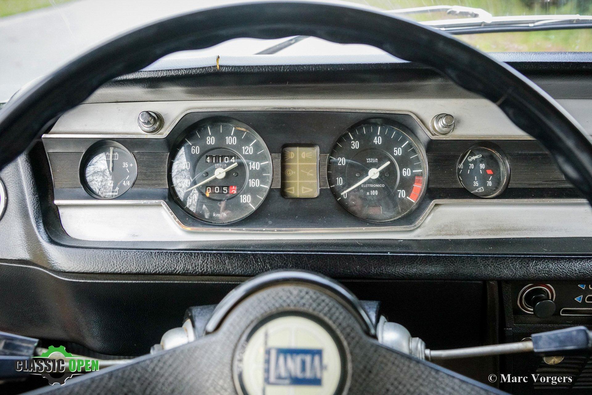 Deze prachtige Lancia verkeert in een zeer goede staat, de carrosserie is geheel gaaf en de auto toont zeer fraaie originele details. De 1300 cc, 95 pk. De V4-motor loopt en klinkt prachtig, is voorzien van twee dubbele Solex carburateurs, en het vermogen wordt via een 5-versnellingsbak naar de voorwielen overgebracht. Technisch en mechanisch is alles up-to-date.