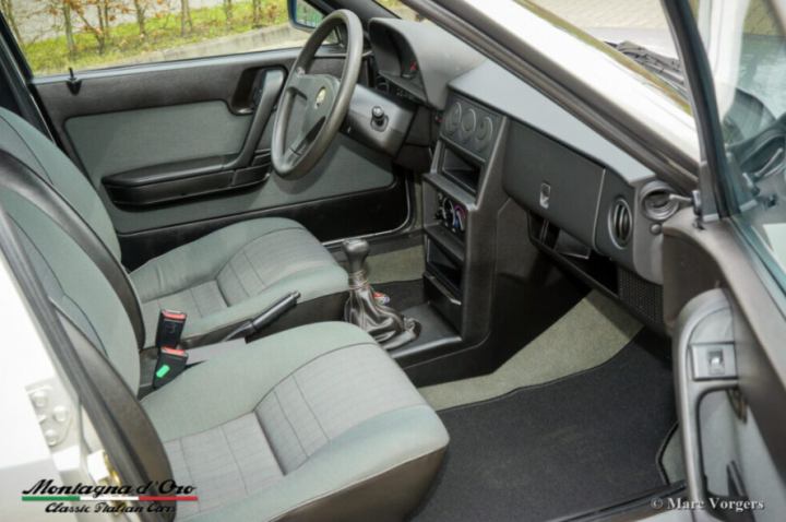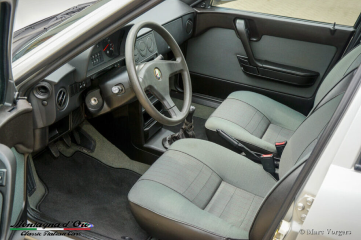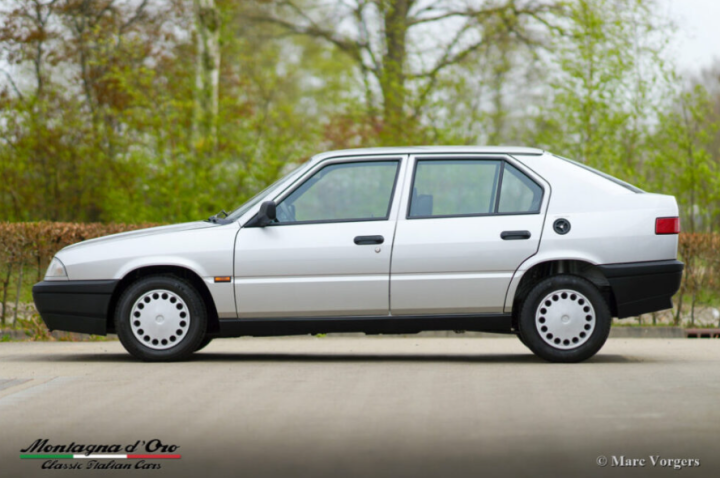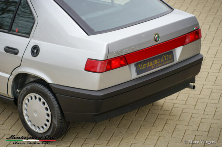 Alfa Romeo 33 1.3 IE Lusso, jaar (eerste registratie) 1-1-1993. Chassisnummer * ZAR907000 * 0587113X. Kleur Grigio Chiaro Metallic (kleurcode 676). Deze prachtige Alfa Romeo 33 werd nieuw verkocht in Padua, Italië. De Alfa Romeo heeft vanaf nieuw 66895 kilometer gereden en de auto heeft zijn laatste uitgebreide onderhoudsbeurt gehad bij 60.000 km. Dit moet een van de mooiste Alfa Romeo 33’s met een lage kilometerstand in Europa zijn, dit exemplaar verkeert in perfecte nieuwstaat! De auto toont als nieuw, voelt als nieuw, rijdt als nieuw en ruikt als nieuw! Deze Alfa 33 wordt compleet geleverd met de originele boekjes, historie en onderhoudsrekeningen. Het originele gereedschap is aanwezig, en het reservewiel is nooit gebruikt! De Alfa Romeo 33 was de opvolger van de Alfasud en is voorzien van een voortreffelijke viercilinder boxermotor die de voorwielen aandrijft. De Alfa Romeo 33 is een van de meest gewilde betaalbare rijdersauto’s uit die tijd! De Alfa 33 werd opgevolgd door het model Alfa Romeo 145. Dit is een prachtige Alfa Romeo 33 1.3 IE Lusso in een smetteloze TOP-conditie!