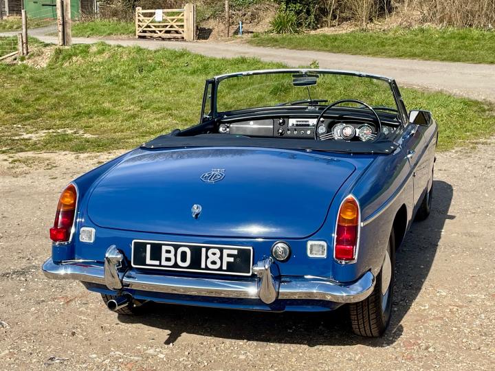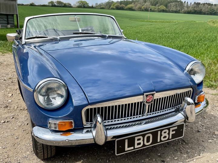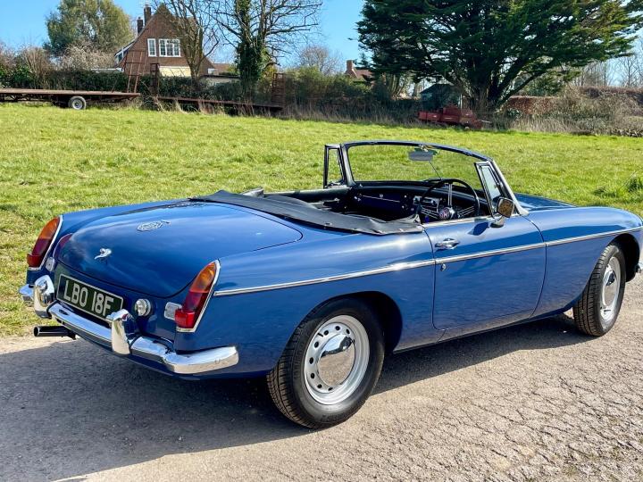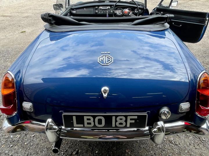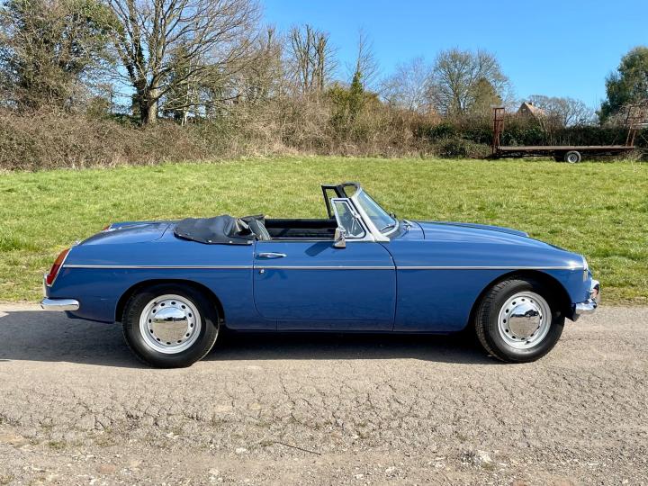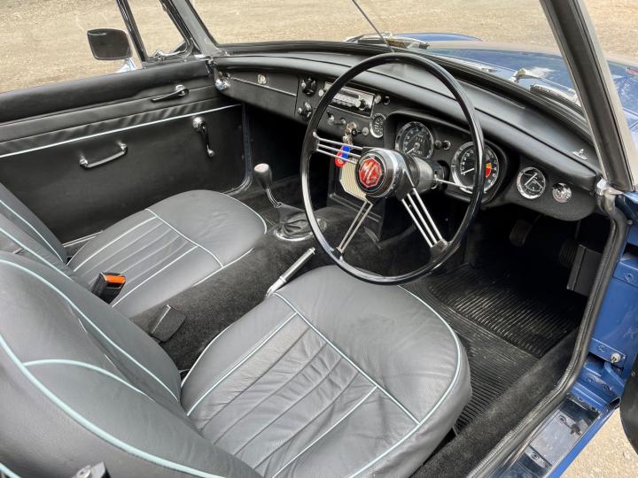 CONCOURS”67”5 SPEED GEARBOX. Fully Restored Roadster.Full Nut and Bolt Restoration in 2011 over a 3 year period.Built to Prize Winning Concours Condition original to its 1967 early build specification 1,700 miles since,With only some 50,000 miles previously covered from New in 1967.Very Recently fitted with the fantastic upgrade Ford Type 9 Five Speed Gearbox as a recommended upgrade by MG Owners Club And Servo dual circuit Brakes ,absolutely superb to drive.Part of a private collection this beautiful example of one of the best Collectable Classic Years to own has been Built to its exacting 1967 Factory Specification to the finest quality and would cost you today some £60,000+ and a wait of over a year to have built.The detail is exquisite,even to the Original Rare Factory Fitted Sports Steel wheels and correct Alluminium Bonnet,in immaculate Mineral Blue Paintwork,superb Chrome throughout with beautiful Fine hide Blue leather seats and all interior completely restored.New Hood.Show Winning Engine Bay has had the Original Engine Professionally Re Built to Fast Road Specification,Incl performance camshaft,Upgraded Correct Twin SU Carburettors,performance Manifold and Exhaust System ,Electronic Ignition,all to benefit the wonderful drive on our modern roads.The list is endless,fully documented in its huge History file,together with CD Rom of the Build and it’s Original Passport to Service Document from its Suppling Dealer in 1967.Comes fully Serviced and will come with a New MOT,tho it is an Historic Tax and MOT Exempt Classic Vehicle.If you are looking for the absolute Top Top unmolested early 1967 Spec MGB Roadster to cherish and enjoy,Built to Investment Standard then this is the one to come and see,you won’t be disappointed,please don’t miss it.He will be