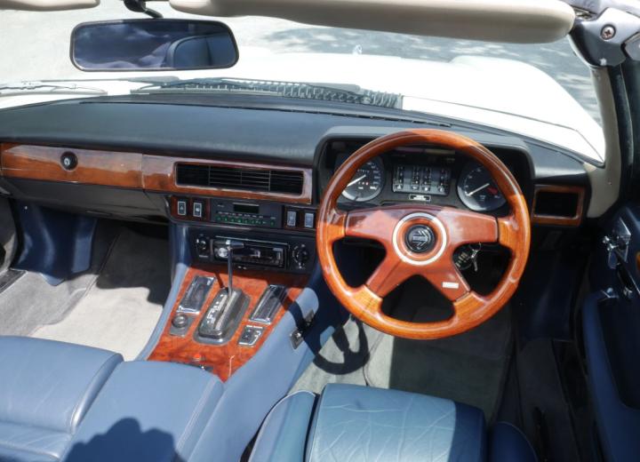 Superb in white with blue leather interior, re-imported from Japan in 2018 with around 41,500 kms on the clock, serviced regularly since, the last one in May 2025 when it also had a new MOT, recent work includes new rear discs, calipers, and shock absorbers (rear brakes are expensive because they are inboard), front brakes overhauled in 2021, re-conditioned steering rack, front shock absorbers, new battery etc.. Body is excellent, white paint is gleaming, excellent chromework, lovely interior with re-connolised blue leather seats, excellent woodwork, fine hood, headlining and carpets. This example is loaded with electric heated seats, electric windows, speed control, headlight wipers, spots, Momo steering wheel, engine is sweet and smooth, drives as a luxury cruiser should, odometer now reads just under 48,000 kms (30,000 miles), comes with excellent UK history, some Japanese documents, hood cover and new MOT.