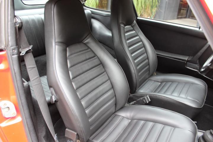 Maintaining its originality, this ’75 2.7 is finished in Guards Red, adorned with black ‘Carrera’ graphics, a prominent whale-tail rear spoiler, and classic Fuchs alloy wheels. Step inside to find a sleek black-trimmed interior, complemented by a sporty steering wheel and a Sony stereo/CD player.