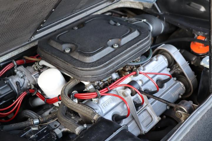 De motorruimte is droog en toont de blinkende V8-motor, die origineel is. Ook de versnellingsbak is nog origineel, blijkt ook uit het 'Ferrari Classiche' rapport. In 2025 is een onderhoudsbeurt uitgevoerd bij de erkende Ferrari-dealer Kroymans voor een grote onderhoudsbeurt inclusief vervanging van de distributieriem en nieuwe APK (geldig tot februari 2027).Te merken valt dat de auto technisch goed onderhouden is, want hij rijdt en schakelt goed.