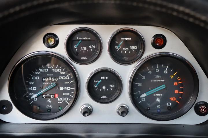 The engine compartment is dry and shows the shiny V8 engine, which is original. The gearbox is also still original, as evidenced by the “Ferrari Classiche” report. In 2025, a service was carried out at the authorised Ferrari dealer Kroymans for a major service including replacement of the timing belt and new MOT (valid until February 2027).It is noticeable that the car has been well maintained technically, as it drives and shifts well.
