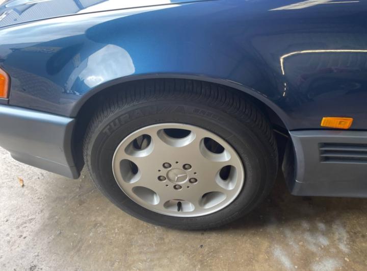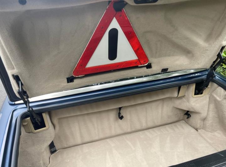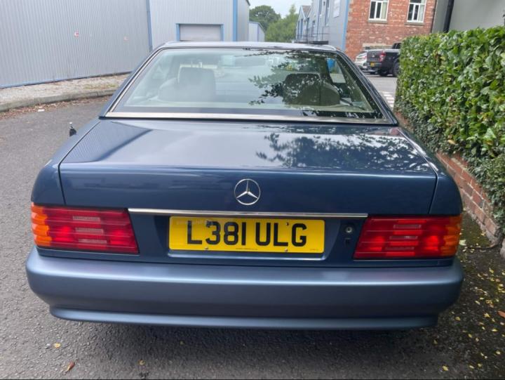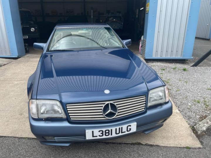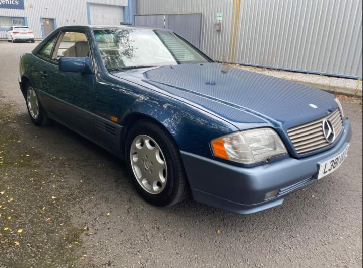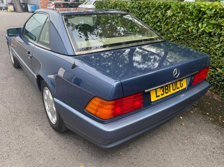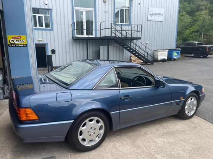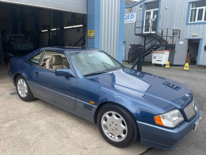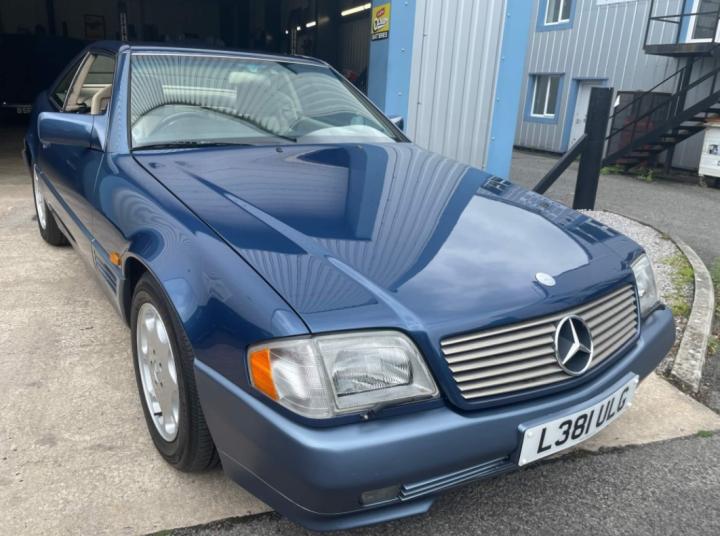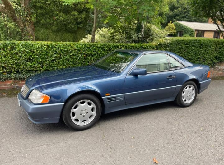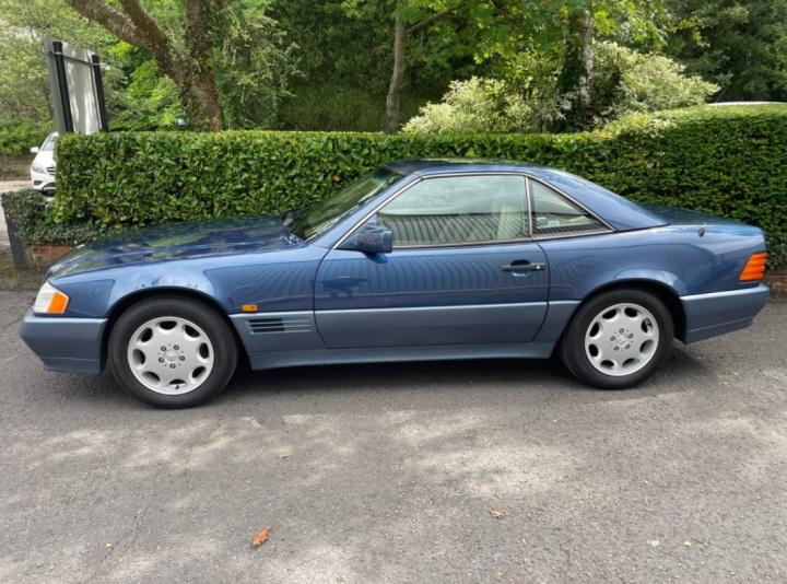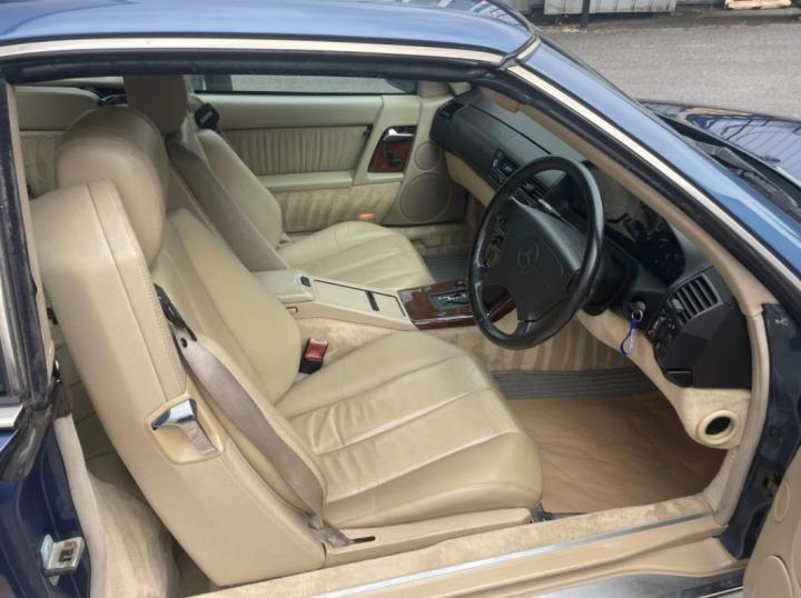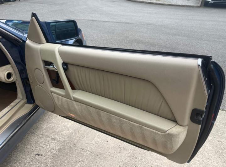 Finished in Nautical Blue with champagne leather, featuring a black power hood and matching blue hard top.