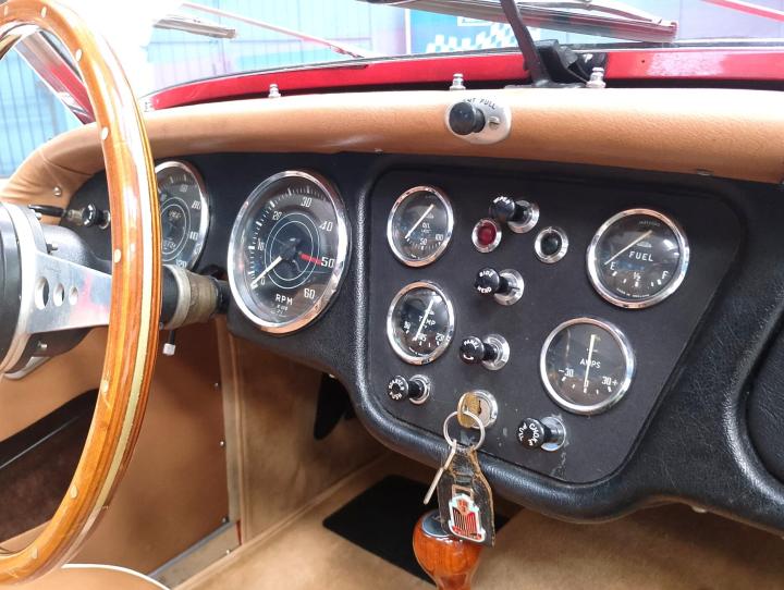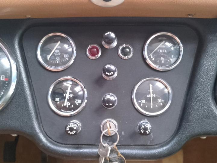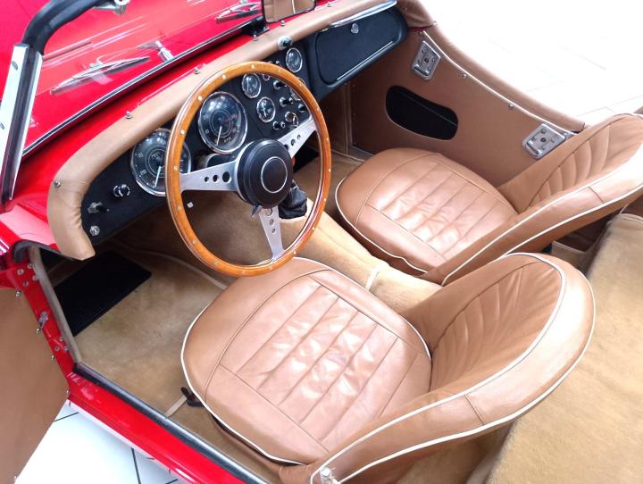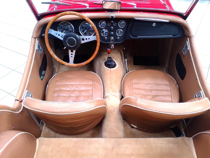 The car is fitted with a Moto-Lita wooden steering wheel, one of the most iconic and sought-after accessories in the world of British classic cars. Handcrafted in England, this wheel combines timeless elegance with sporting function, featuring a brushed aluminium frame and a hand-polished rim made from high-quality hardwood.