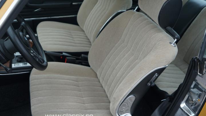 Interior: Inside, this BMW 3.0 CSi E9 is just as impressive. It has a beige velour interior with black door cards, a beautiful combination with the gold exterior. The interior has been fully restored, including the seats, carpets, headliner, and wood trim. Everything feels like stepping into a new E9 from the 1970s. The electric sunroof works perfectly, and all switches, instruments, and details function as they should.