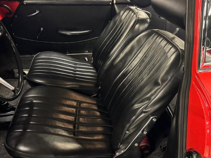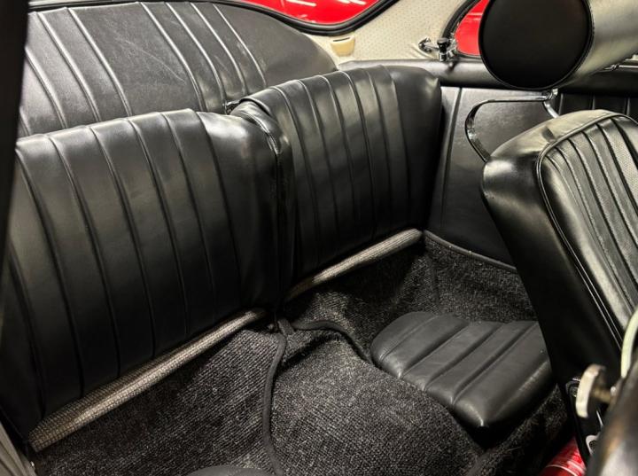 Interiören är minimalistisk men genomtänkt, med tidstypiska detaljer som runda mätare och bekväma säten. Varje aspekt av bilen är utformad för att skapa en harmonisk balans mellan form och funktion.