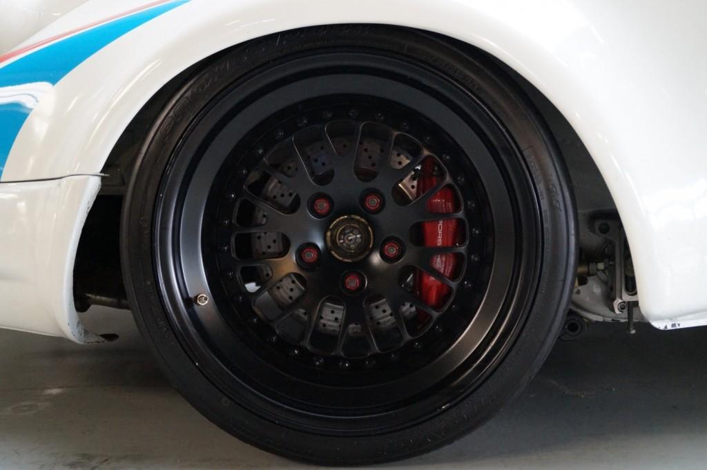 Authentic center-lock racing wheels in matte black complete the period look, paired with massive racing slicks (10J x 15 front, 14J x 15 rear). An additional set of rain tyres accompanies the car, ensuring readiness for any track condition.