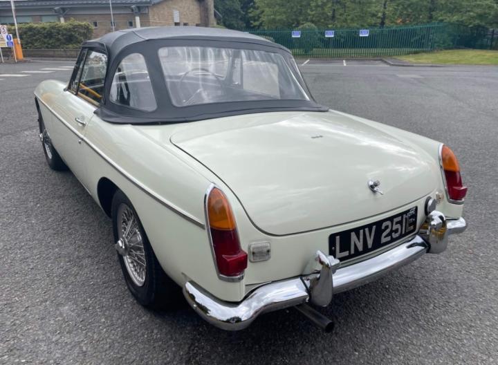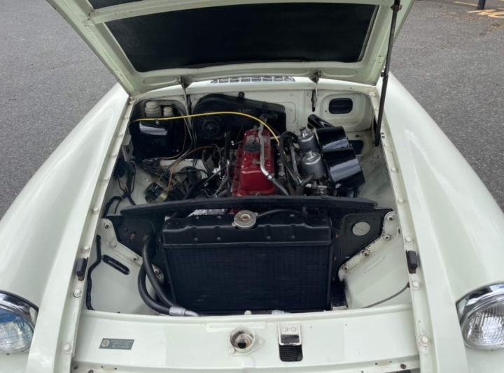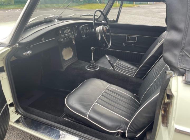 A matching-numbers, right-hand-drive example finished in OE White with black leather interior piped in white.