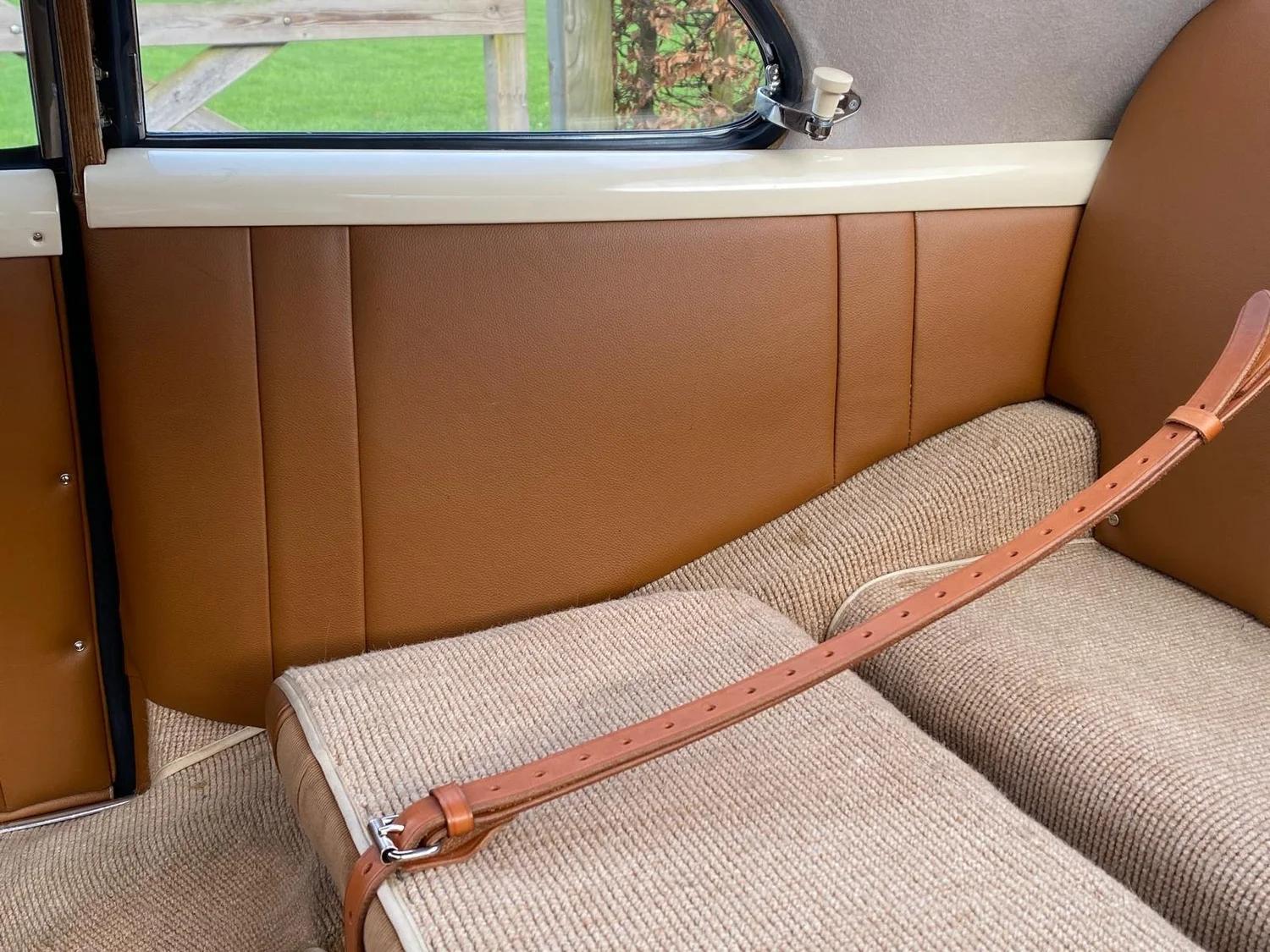 Beautiful Porsche 356 Pre A Knickscheibe coupé from 1954. This car has been ordered by the famous Porsche dealer Hoffman in New York. It was ordered as a standard coupé in black with a green leather interior with as only options: a sleeper seat and a pair of Bosch driving lights. The customer who it was ordered for was a Mr Plummer. Maybe Christopher plummer? The famous actor and Porsche enthousiast? At some point in the past the car has returned to Europe where it has been totaly restored and received this very elegant beige colour with a brown leather interior combination. The full body was restored before being painted and is still in outstanding condition. Mecanically the car has received a period correct 1500cc flat four engine, but not matching any more. Any records on why this car swapped engine is unfortunately unknown. The engine is completely rebuild aswell as the gearbox and runs as new. All other mecanical components also received a rejuvenation cure. Also all was kept as original as possible. Still in 6V configuration! The brown leather interior is in really good condition as is all the rest of the interior. The dashboard has its VDO gauges who are all rebuild and working well. You will notice the Telefunken radio is still in it's place. The front luggage compartment houses a chrome spare wheel and a new Optima 6V battery who is connected to a battery kill-switch underneath the dashboard. On the outside of the car you will find 2 Marchal driving lights, a Nurburgring badge and Reutter logo. A engine hood luggage rack comes with the car but is not fitted at this time. All the new chroom wheels have been wrapped with new period looking tyres in size 5.00-16. If you are looking for the ancestor of all Porsche's, than this is the real deal.