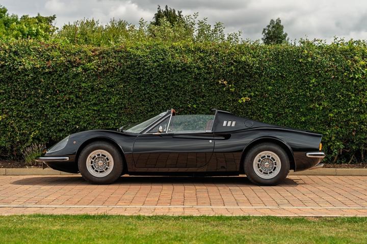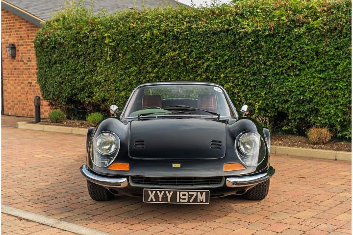 Nero with brown hide/Daytona seat inserts. 54,102 miles. Delivered new in the UK and one of circa 21 right-hand drive models ordered with flared wheel arches and 7.5" wide Campagnolo wheels. Formerly part of the Nick Mason collection, this exquisite Ferrari Dino has a very well documented history and is Ferrari Classiche certified.