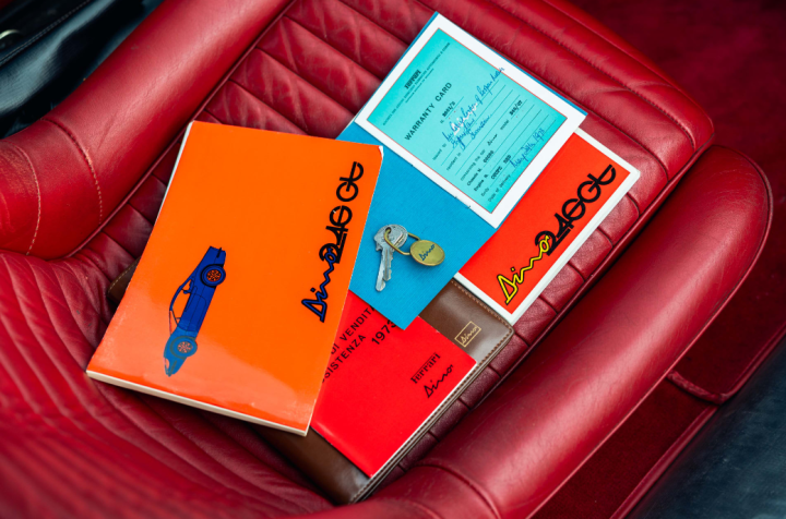 Chassis number 06096 was acquired by the first of its mere three owners, a Manchester-based metal magnate by the name of Robert Cooper, in May of 1973. Despite Cooper only keeping it for six months and covering a mere 1,270 miles, he did return the car to Lovett for its two scheduled complimentary services, as shown in the original Dino Warranty Card.