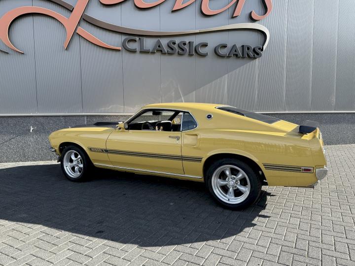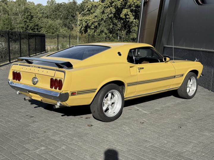 Loaded with a strong running 351w engine with aluminum heads , mild came ,aluminum intake manifold strong powerful engine the double exhausted gives it a nice deep rumble the fmx automatic shifts smooth in all gears loaded with disc brakes ,power steering ,deluxe mach one interior the mustang has be repainted 17 years ago in Europe and looks still very nice after a day polish its super shiny with a deep color, floors are original and clean this mustang has already an european license.