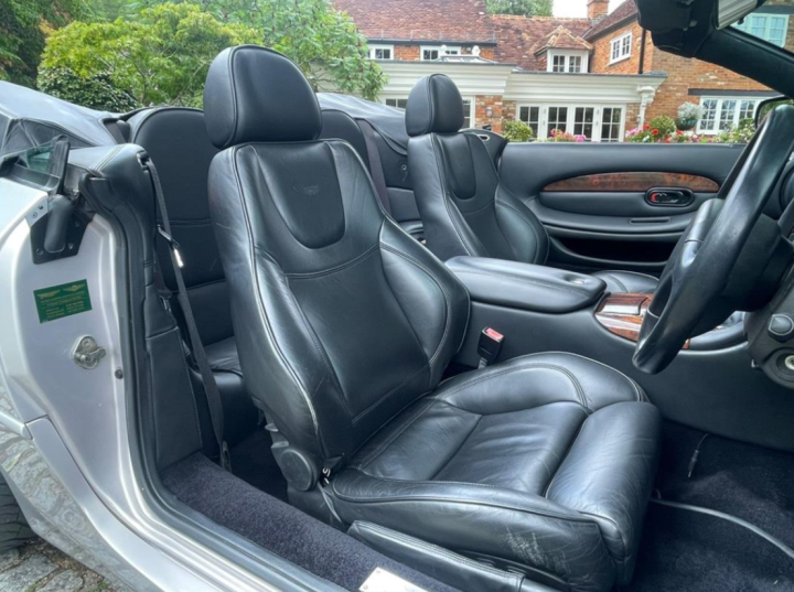 There is also a black leather tonneau cover, a wind deflector, Aston umbrella, Aston battery charger, upgraded Becker radio, Aston soft car cover, upper and lower front mesh grilles and to top it all off an original Aston sports exhaust system plus the cherished number plate W777 AML