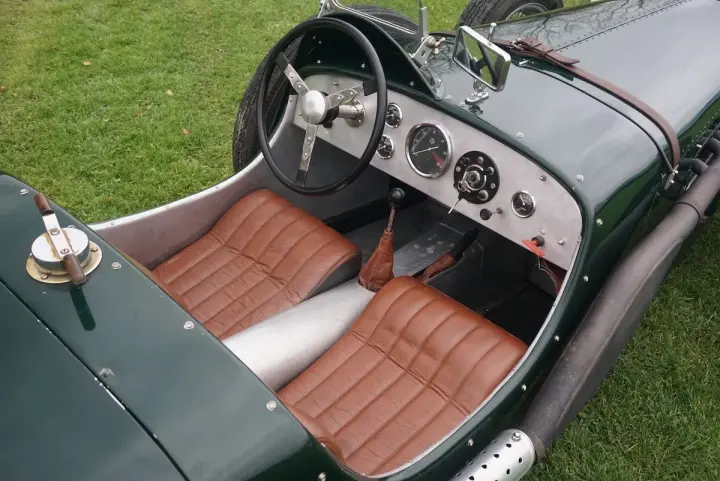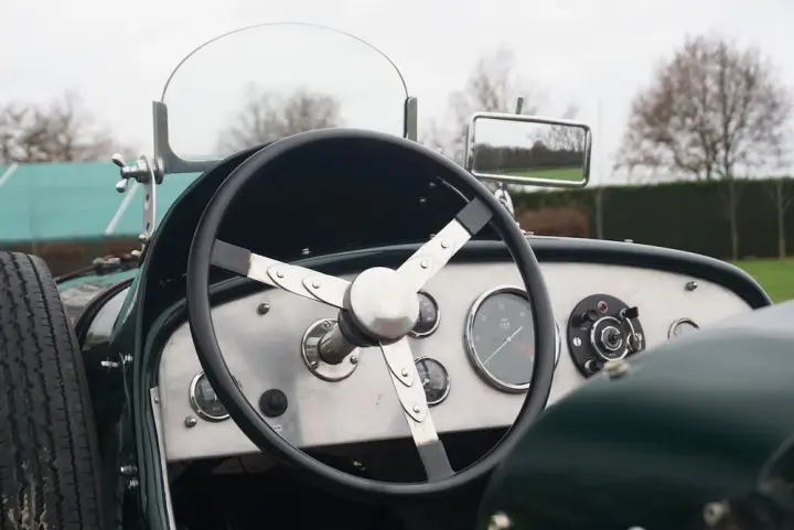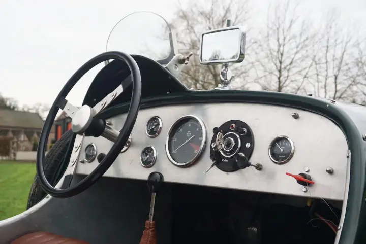 Magnifique Chrysler Roadster avec une finition verte et un intérieur beige. La carrosserie est entièrement en aluminium, ce qui rend la voiture très légère et agréable à conduire. Une combinaison parfaite d'un moteur puissant et d'un poids léger pour participer à des événements historiques.