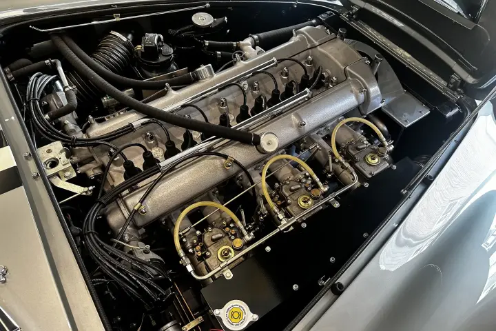 At the heart of the DB4GT is the Tadek Marek-designed straight-six cylinder engine with two spark plugs per cylinder, transmitting its 340bhp to the rear wheels via four-speed manual transmission and limited-slip differential.