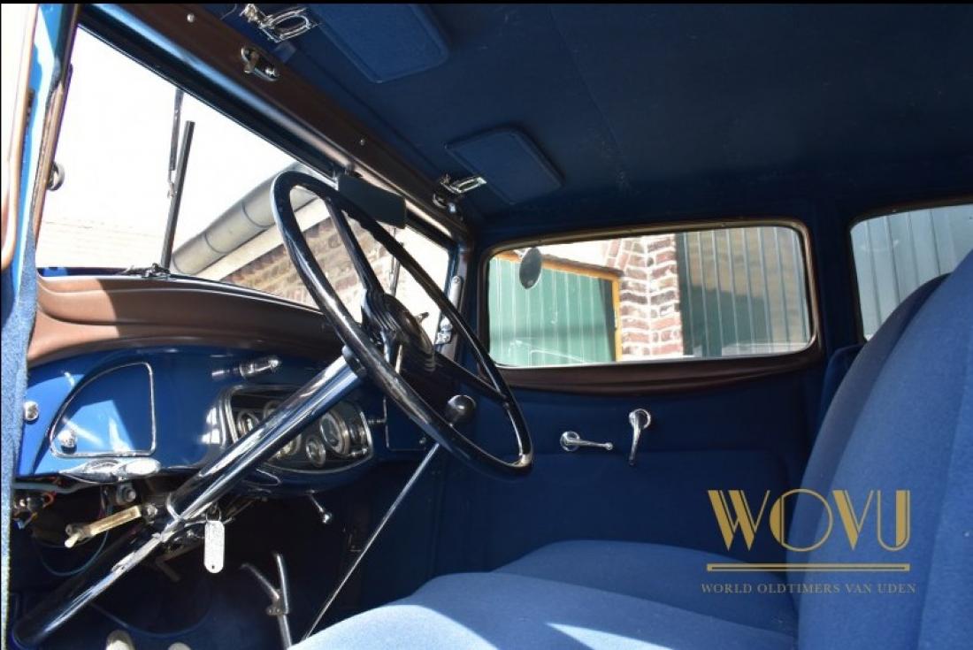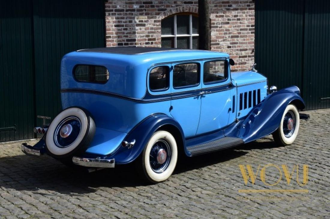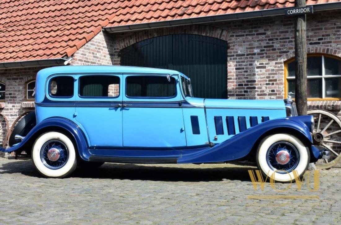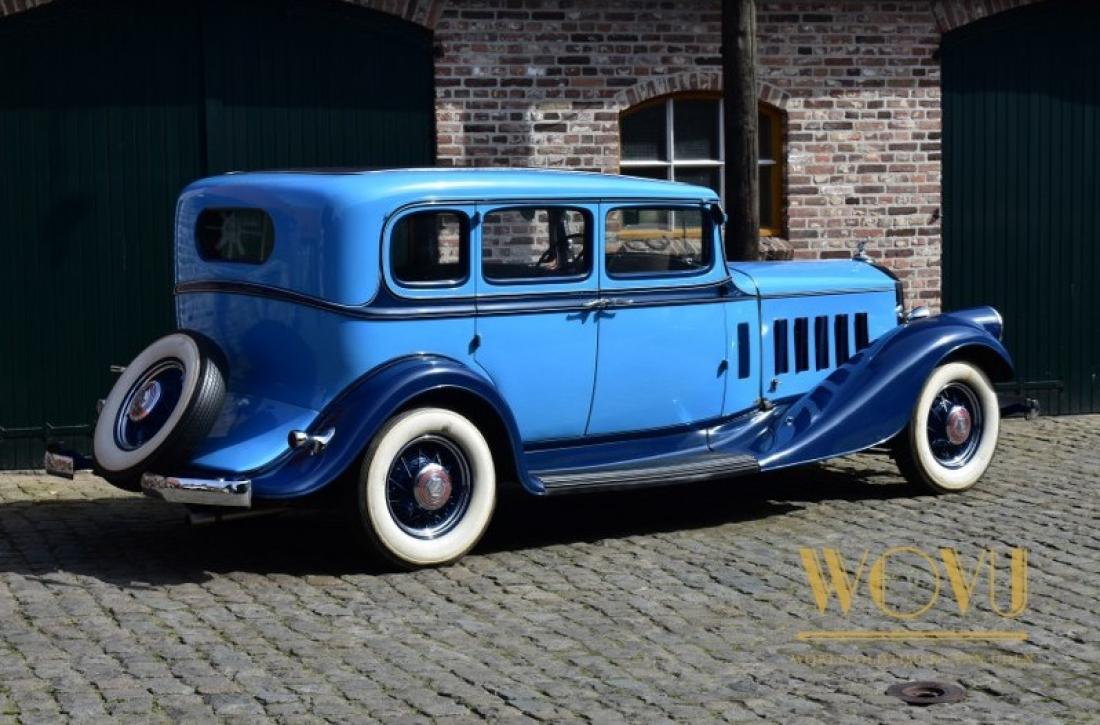 Deze statige wagen heeft geïntegreerde koplampen, iets wat begin jaren 30 nog amper gezien werd.