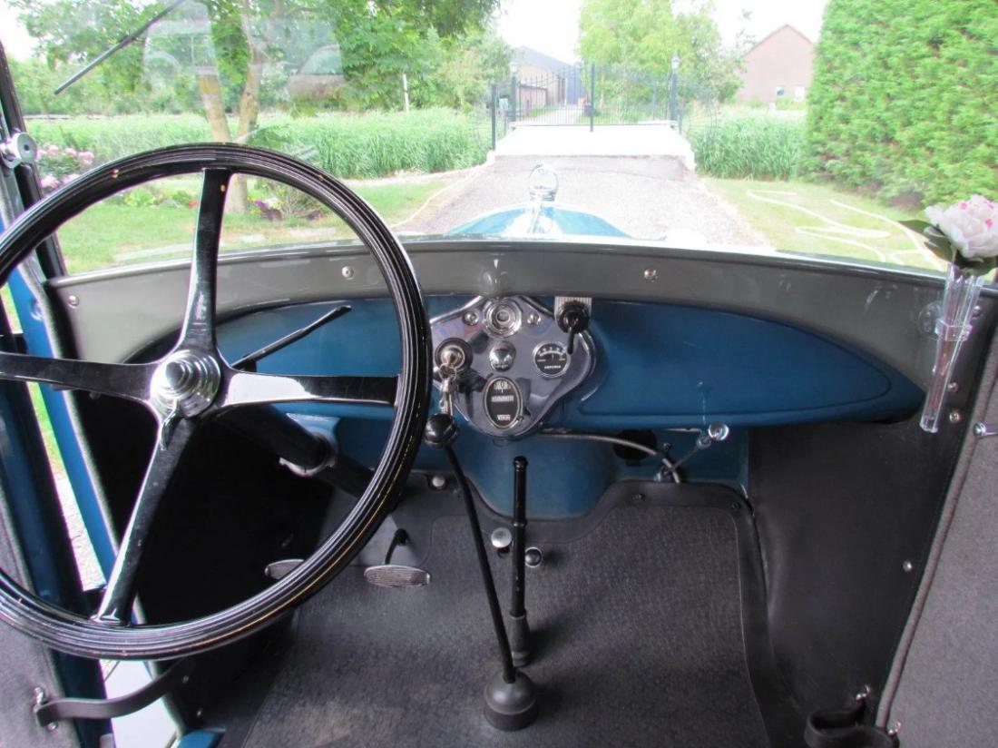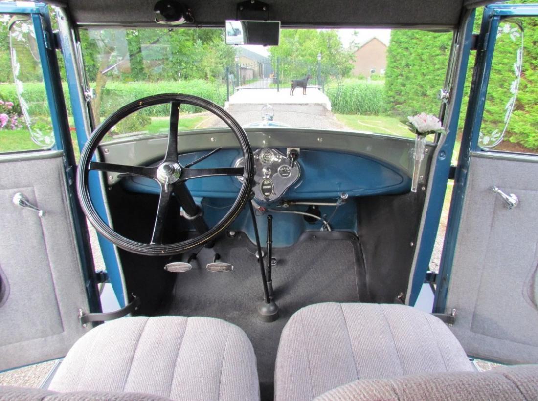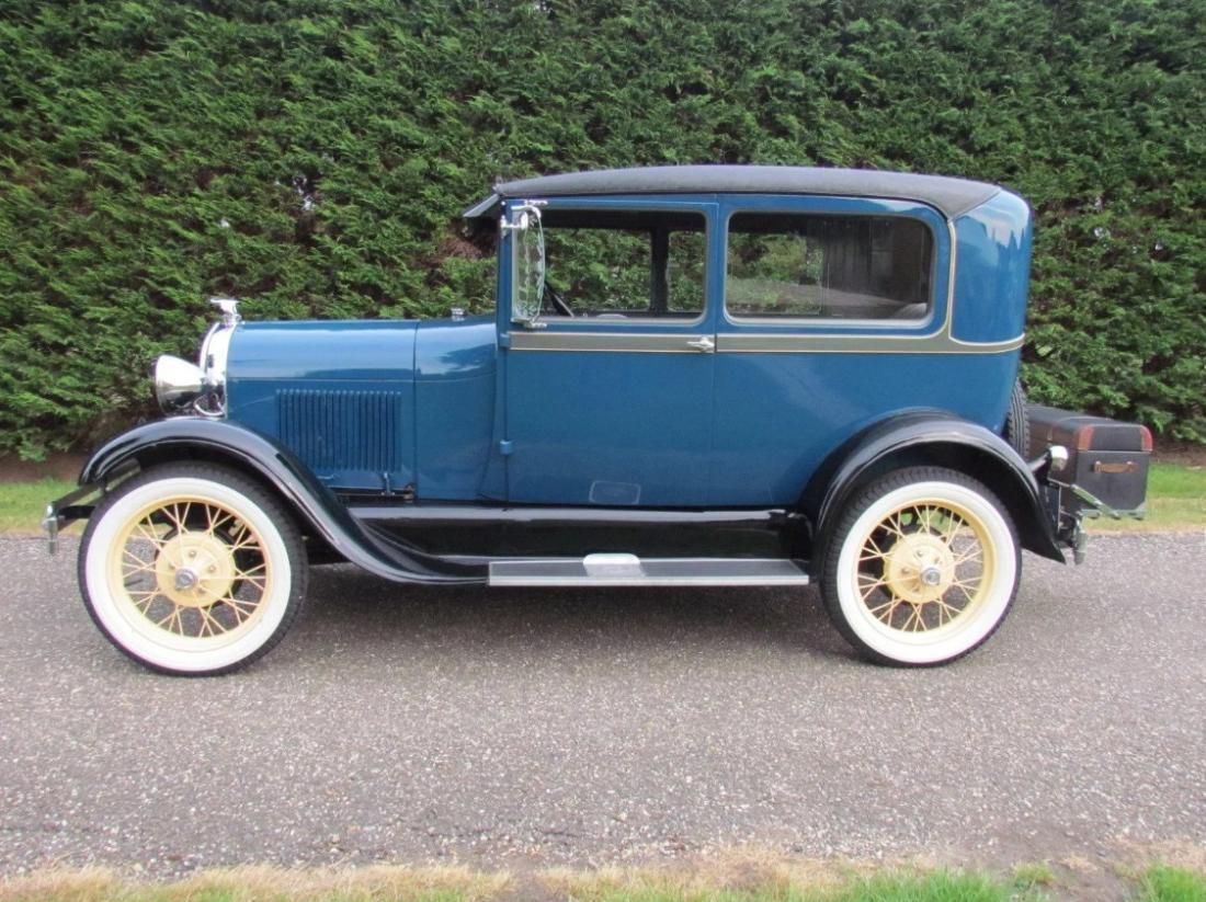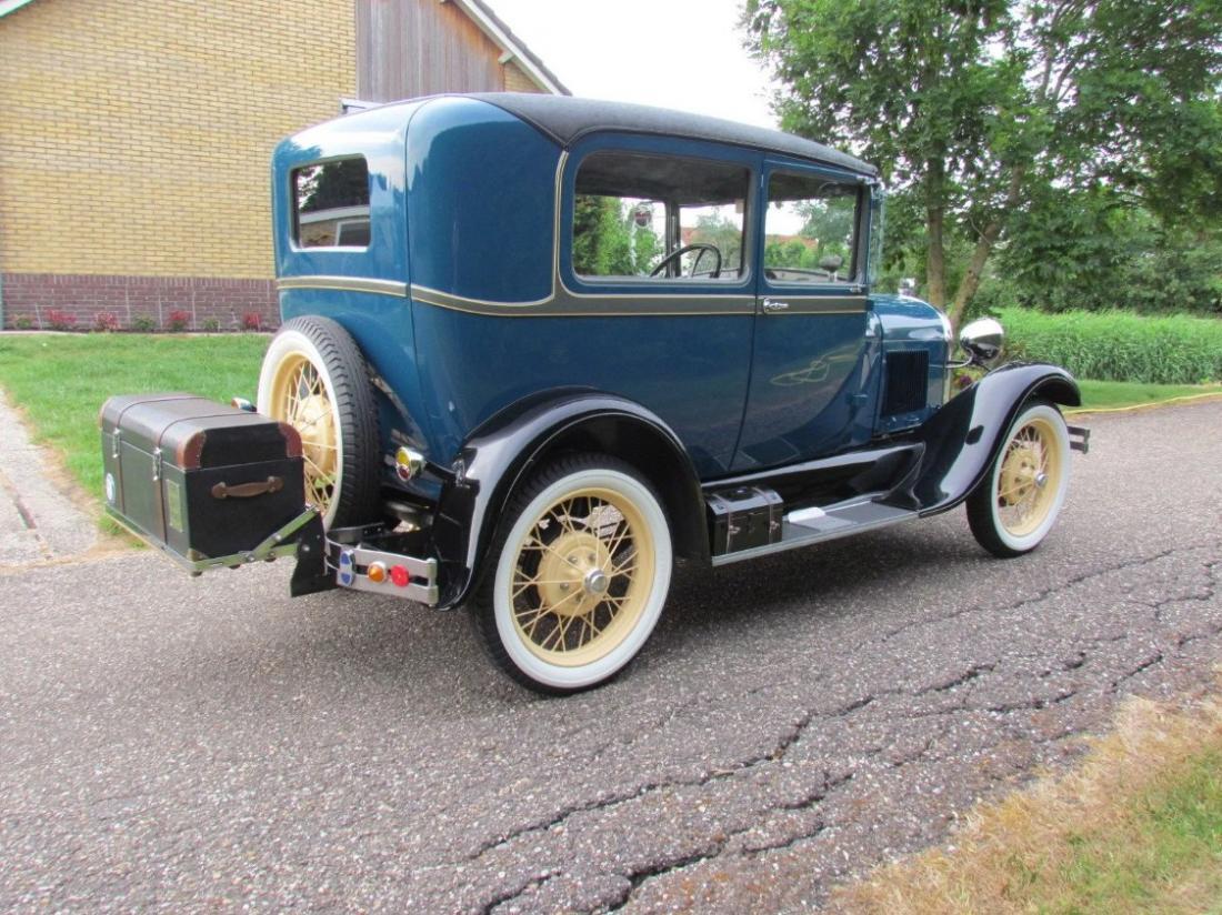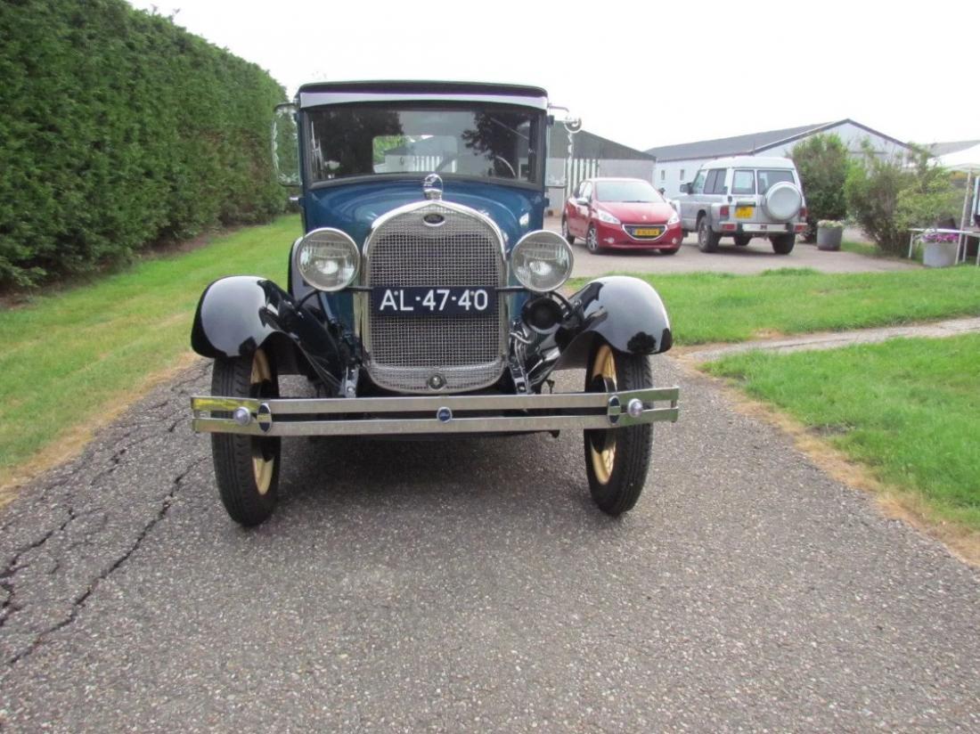 Volledig gerestaureerde A-Ford 2 deurs sedan met mooi strak plaatwerk en lakwerk. De auto heeft nieuwe velgen met zeer goede en nette wide white wall Firestone banden. Als accessoires heeft de auto een bagagerek met koffer en op de treeplank een toolbox met gereedschap