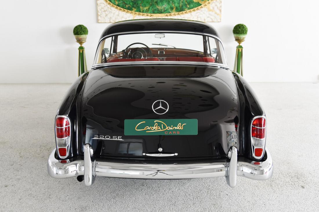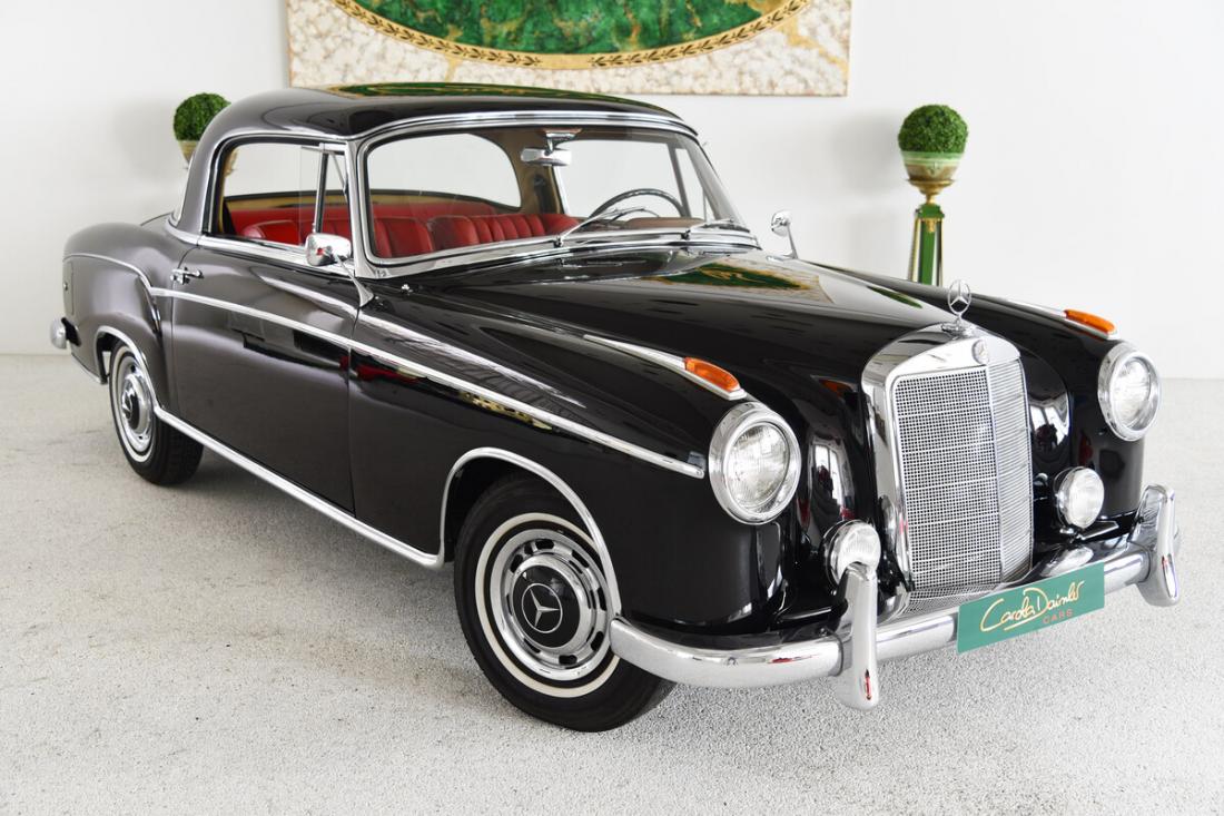 Dieses 220 SE Coupé befindest sich in einem wunderschönen restaurierten Originalzustand. Laut der vorliegenden Datenkarte ist es Matching Numbers und Matching Colors. Es präsentiert sich heute wie bei der Auslieferung im schönen Schwarz (040) mit rotem Leder (1088). Das Fahrzeug wurde am 12.05.1960 als Sonderausführung für die USA mit Sealed-Beam-Scheinwerfern ausgeliefert.