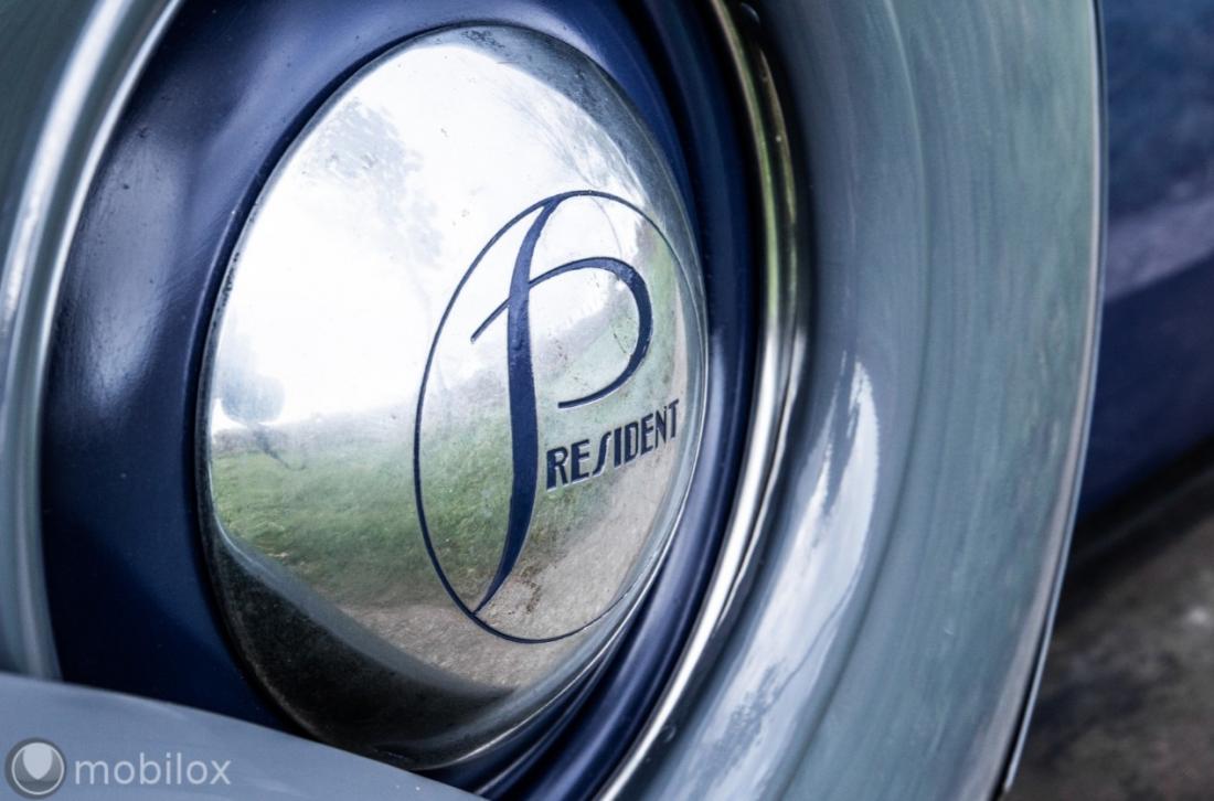 Deze Studebaker President is sinds 1956 in Nederland, een van de weinige die in ons land gereden heeft. De eerste eigenaar uit Enschede heeft zich 20 jaar met de auto laten rijden door een chauffeur. Hij was longarts. Daarna is de auto hobbymatig gebruikt tot 2008, toen is door de huidige eigenaar de opdracht gegeven tot diepgaande restauratie. En dat is ook heel grondig gedaan. Onderkant van de auto is gewoonweg mooier dan nieuw. De auto heeft daarna zo goed als niet meer gereden. Wij hebben m na 4 jaar stilstand weer tot leven gewekt en na wat verse benzine liep de 8 cilinder lijnmotor gelijk erg mooi. De auto is helemaal compleet, heeft een flink pak historie, met fotos van restauratie. Een fijn rijdende (en remmende) auto met een fantastisch uiterlijk. De art-deco neus kom je bijna nergens anders tegen, zeker niet in deze prijsklasse.
