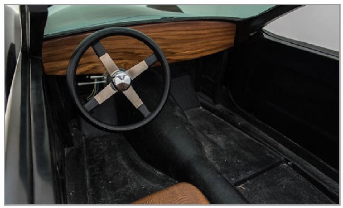 The prototype shown is for sale and includes steel wheels and new radial tires, Bugatti exact replica wheel covers (expensive Lamarr discs), tilt steering column installed with Borgeson steering linkage and steering wheel. Beautiful redwood dash, under cowl metal support structure, doors hinged and latched with door handles. Two small doors in top of cowl for easy under dash access. Body finished in black gel coat. Includes a pair of ’35 Chrysler headlights which have V-d lenses to match the V-d stainless Type 57s Bugatti grille. Replica Bugatti front fender marker lights. Fender skirts are available (see stunning white Bugatti we photographed at the Schlumpf Museum in France).