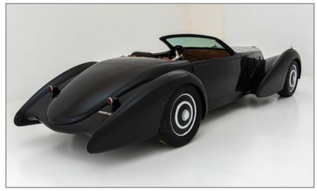 Our unfinished fiberglass-bodied modern day interpretation of Ralph Lauren’s 5+ million dollar masterpiece, his 1937 Type 57sc Gangloff Bugatti drophead (see photo of his car at Pebble Beach). Gangloff is a famed French coachbuilder. Ralph’s car is not for sale, but this tribute replica is so you can absolutely stun the guys at your golf club. A "poor man’s Bugatti" if you will. Our price below offers a considerable savings compared to buying our body and chassis kit and trying to duplicate the unfinished car we are offering here.
