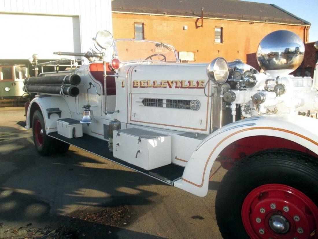 1000 GPM pumper with booster tank mounted on a giant 202 inch wheel base chassis. Built for the town of Belleville, New Jersey and delivered on 10-30-1939.