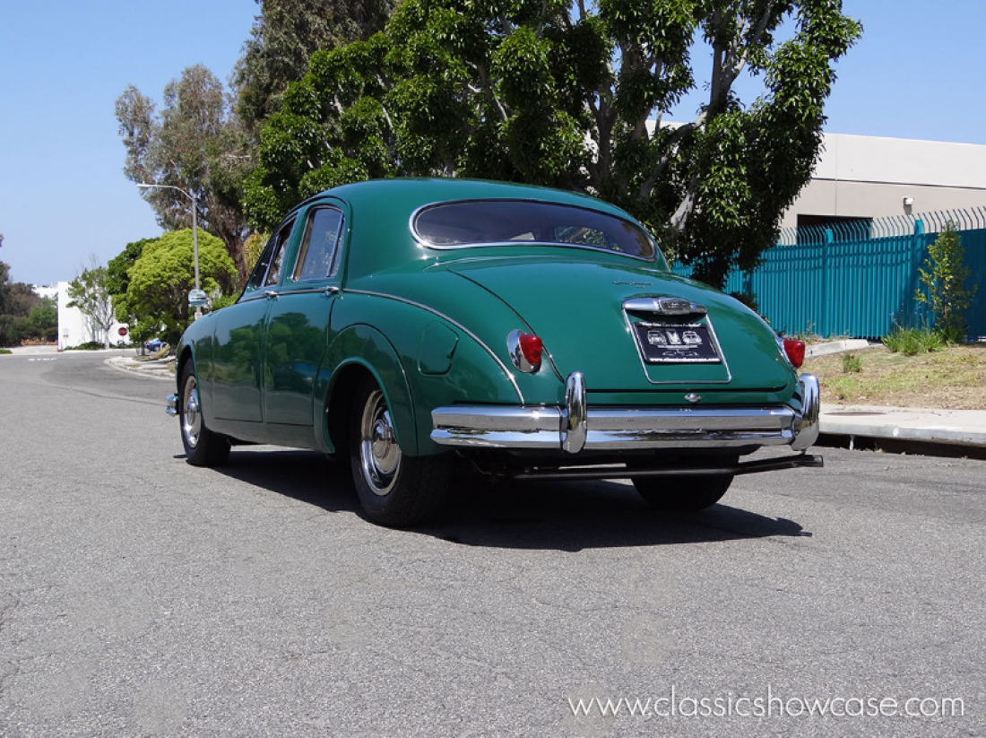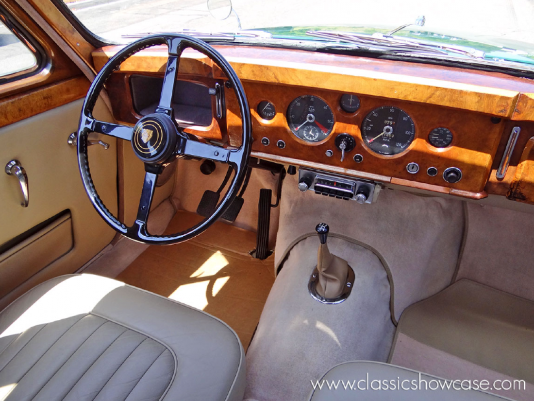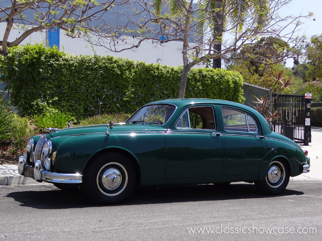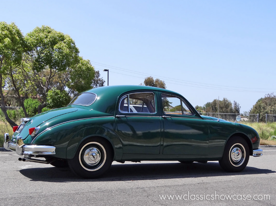 This 1959 Jaguar Mark I is a very original and elegant Saloon that is powered by a rebuilt 3.4-liter inline-6 cylinder engine with dual SU carburetors, and a 4-speed manual transmission. The Jaguar is finished in a desirable color combination of British Racing Green with a Biscuit interior and features a Wilton wool headliner and sun visors in very good condition, as well as wooden trim all around the interior and doors - all fitting very nicely.