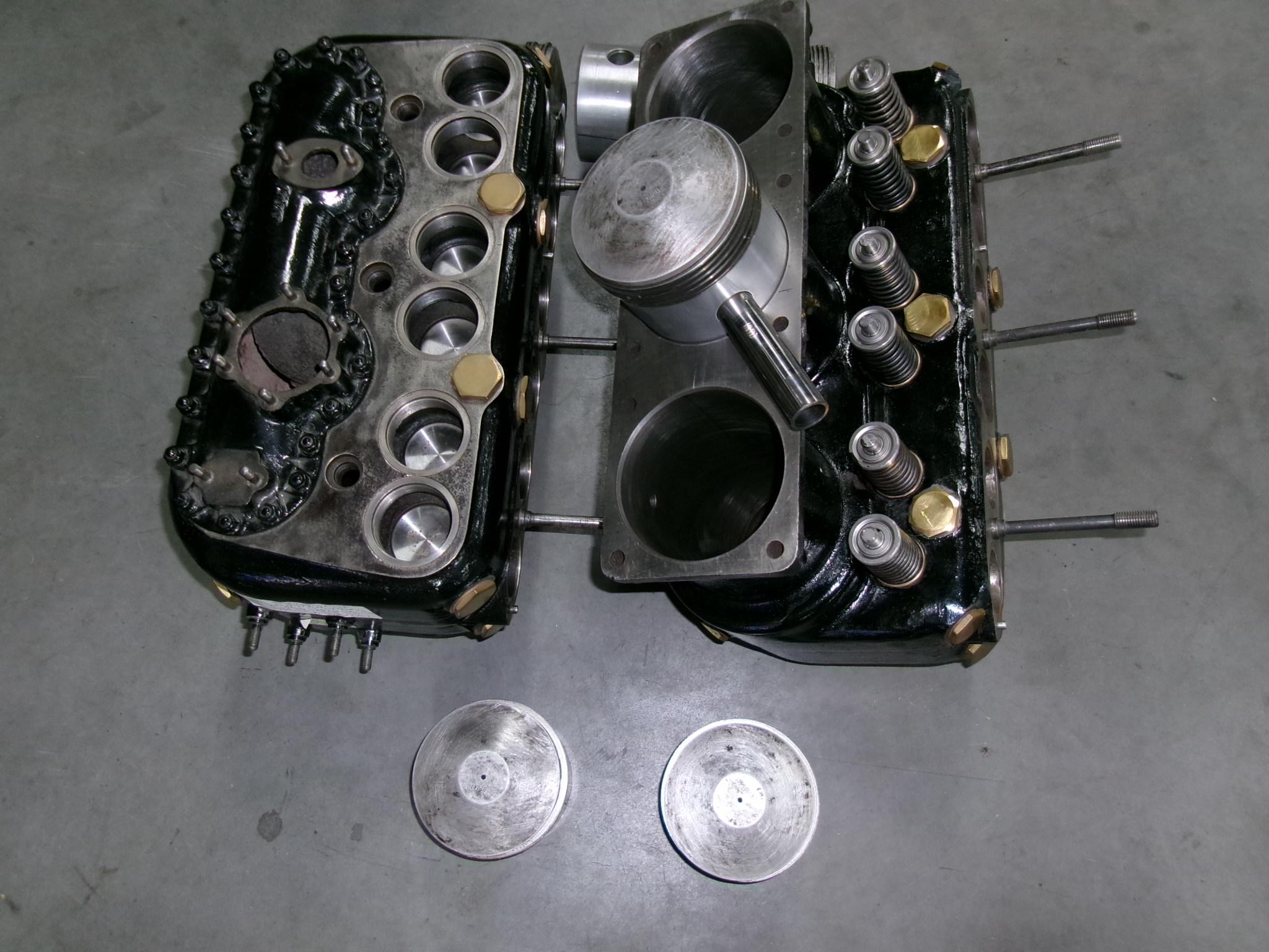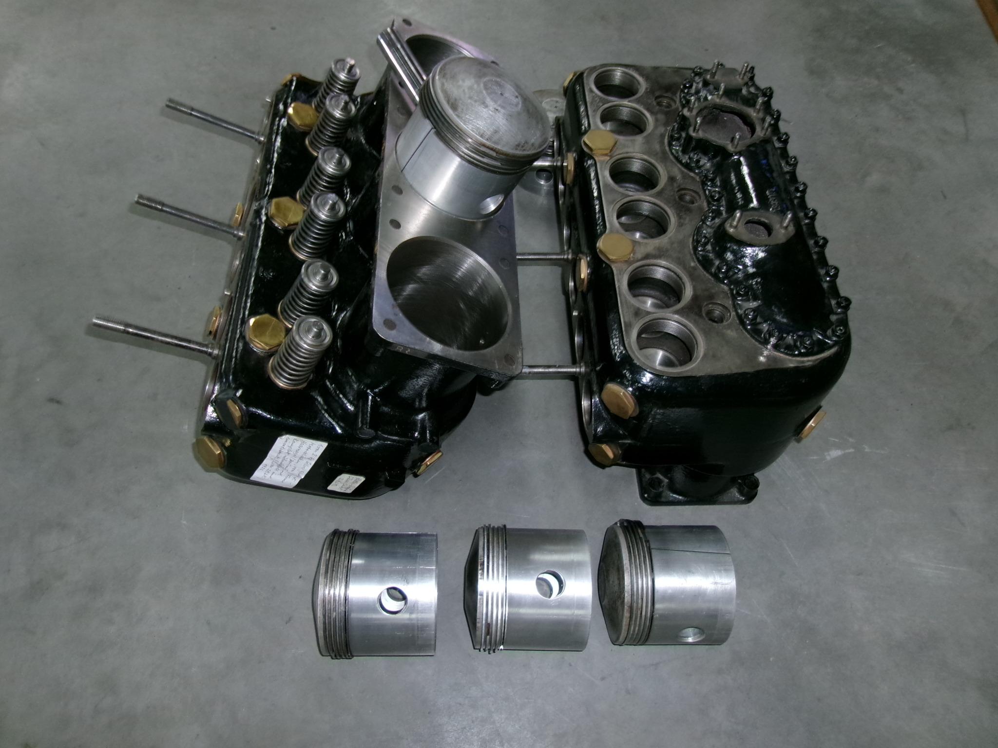 Met 6x gebruikte zuigers, geboord op maat voor deze cilinderblokken.