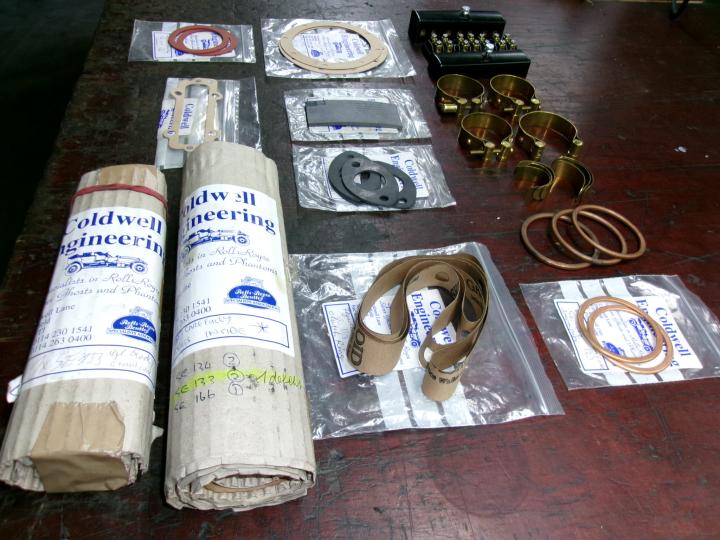 New gaskets, clamps, fuse boxes, etc. for Rolls-Royce Silver Ghost.