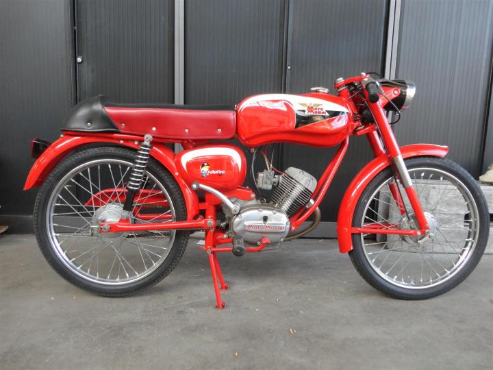 Een perfect gerestaureerde, ZEER fraaie, geheel originele en goed lopende 1962 Moto Morini Corsarino. Een 50CC 4takt motor. Grote keus in motor- en bromfietsen in de Stolze Collectie!