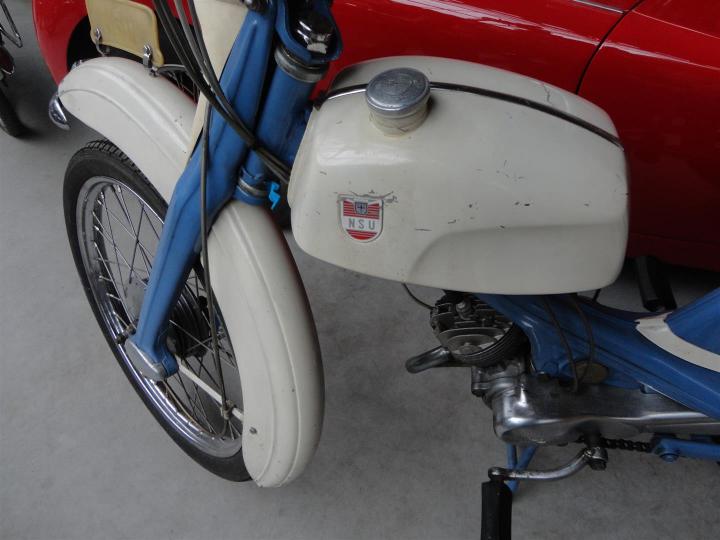 Een 1964 NSU Quickly F brommer, 50 CC. Goed lopend, ZEER origineel en compleet. Met NL registratie. Grote keus in motor- en bromfietsen in de Stolze Collectie!