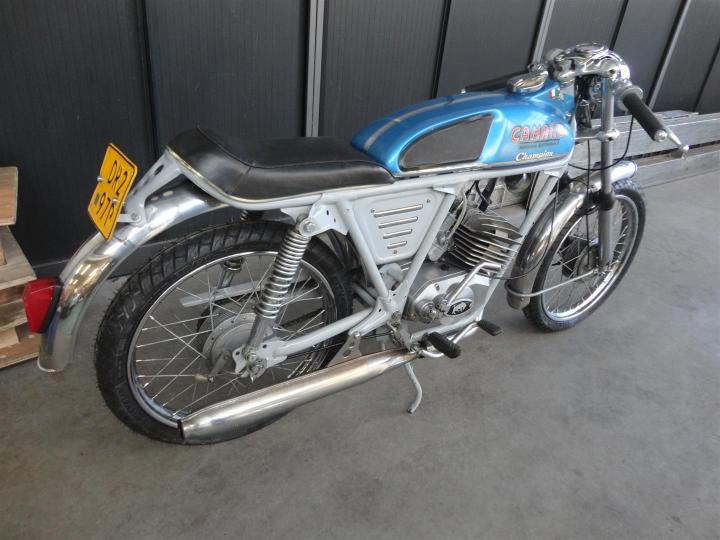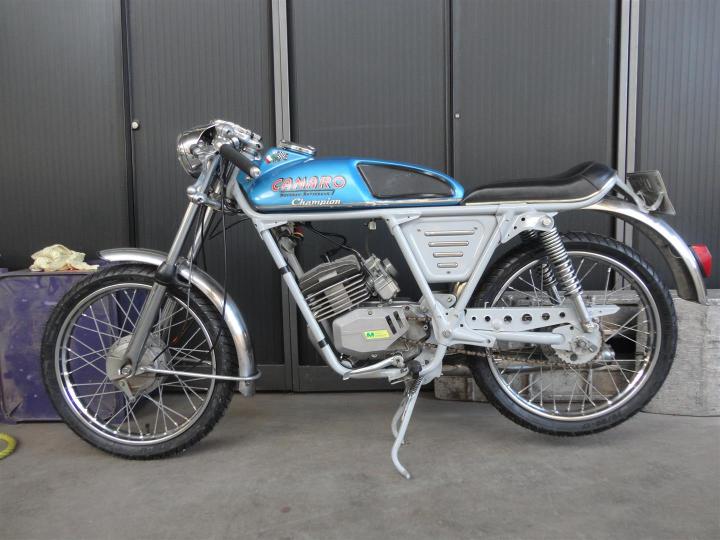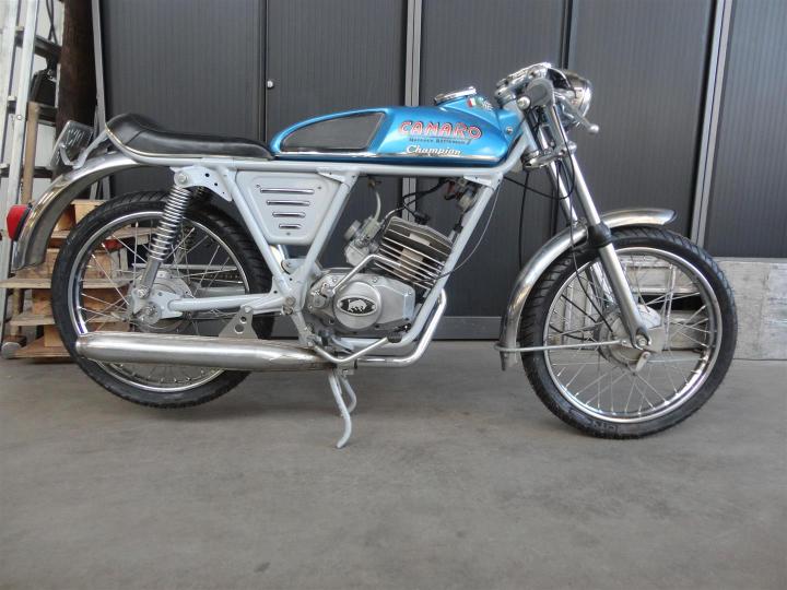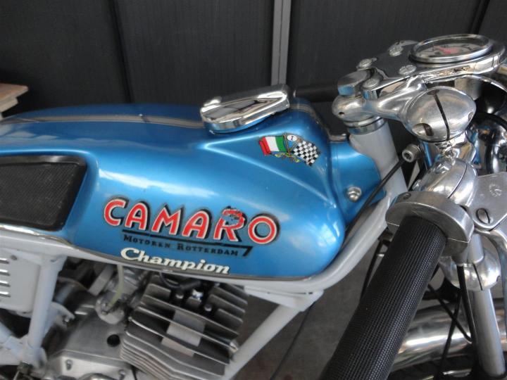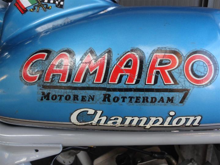 Een unieke Camaro Champion uit 1970. Perfect lopendrijdend, en snel!! Hij gaat maar liefst 120 KMu. Gemaakt in Rotterdam met een Italiaans 50CC blok. Heeft een NL kenteken. ZEER mooi, heel apart en geheel origineel. Eerste lak. Grote keus in motor- en bromfietsen in de Stolze Collectie!