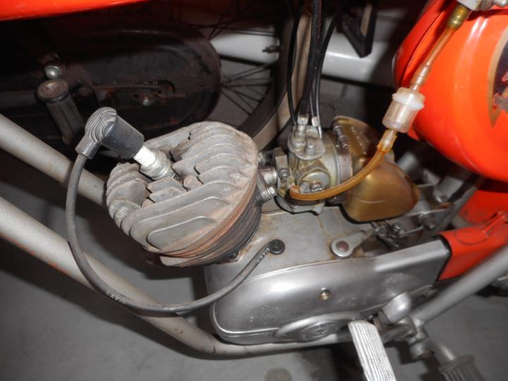 Een bijzondere brommer. Een oranje Vechietti. Hij staat hier te koop.Het frame is van een Negrini. Grote keus in motor- en bromfietsen in de Stolze Collectie!