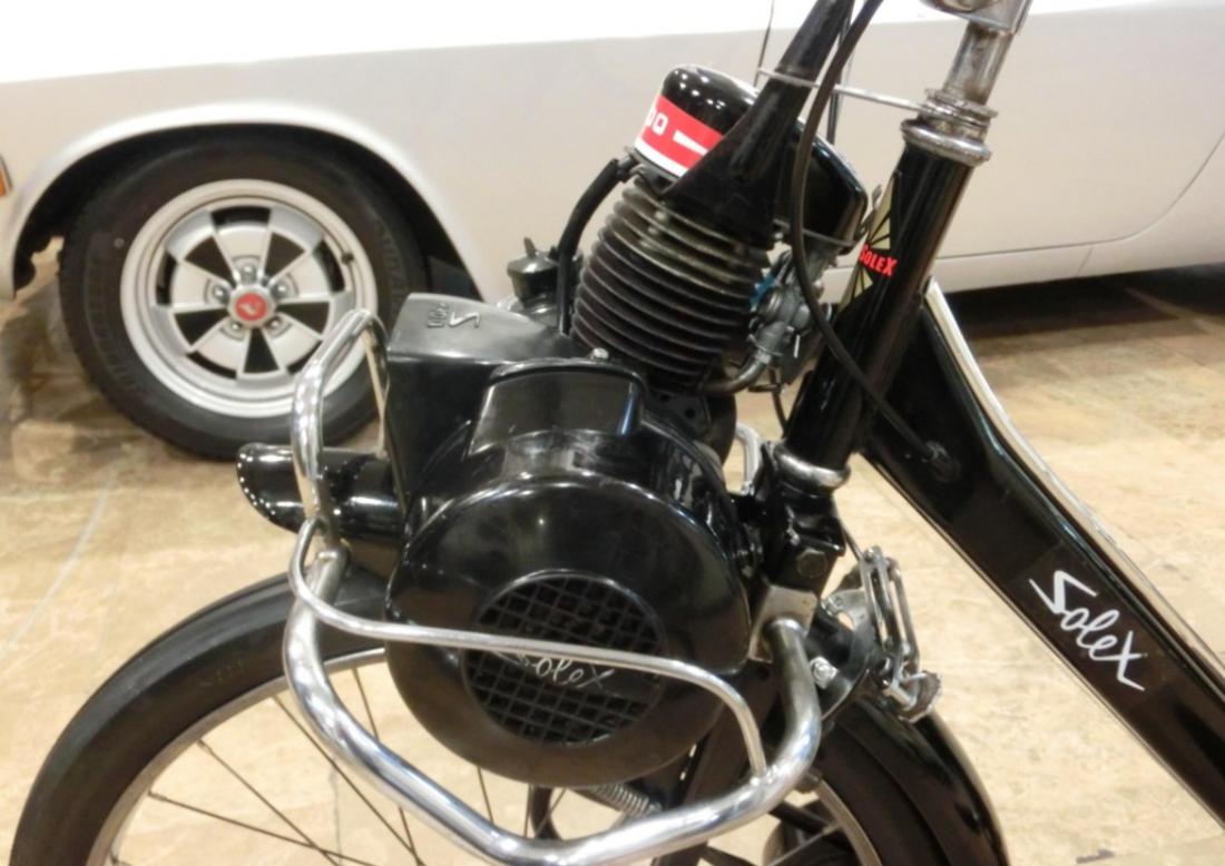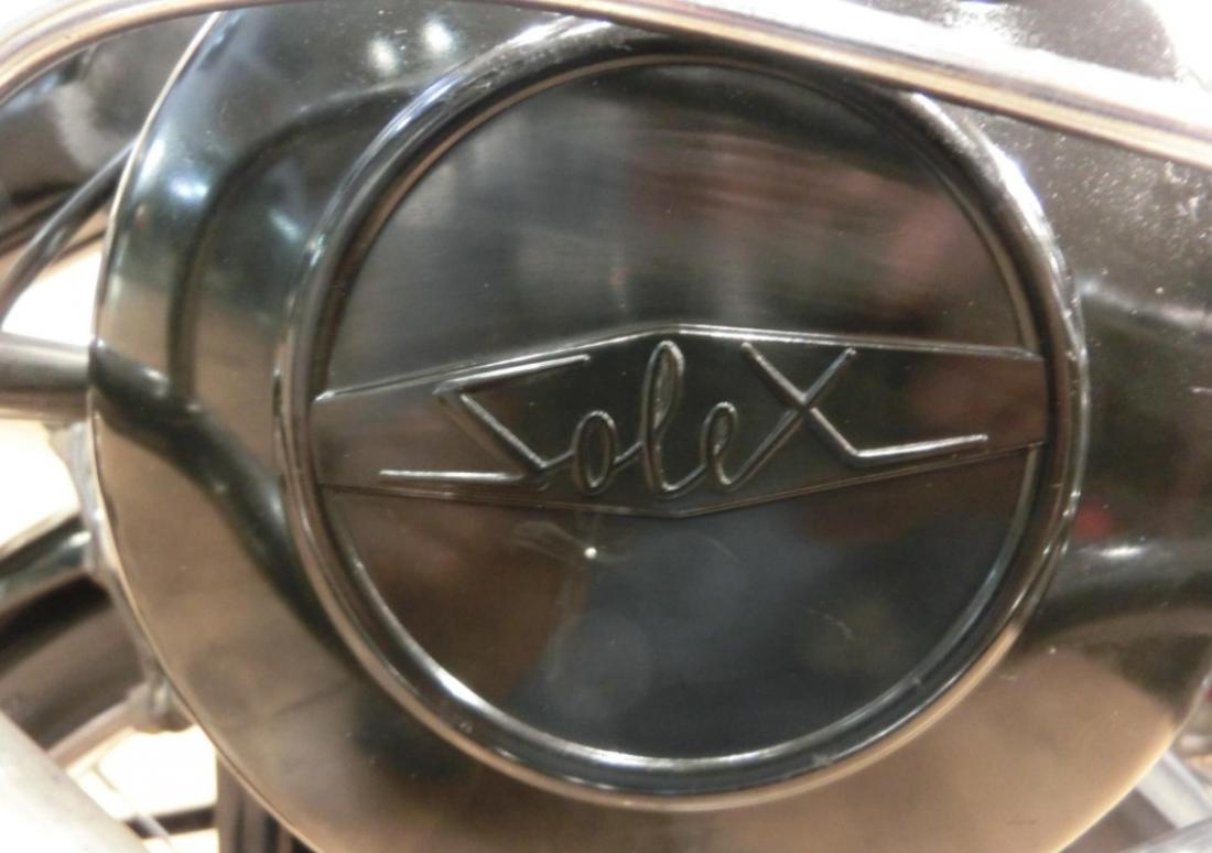49 CC., 1 CILINDRO, 2 TIEMPOS, MONOVELOCIDAD, VERSIÓN FRANCESA SOLEX S3800, EMBRAGUE, ESTILO BICICLETA CON MOTOR DE GASOLINA AUXILIAR, MUY ORIGINAL, DEFENSA MOTOR CROMADA, RECIÉN PINTADA, ESPEJO RETROVISOR CROMADO, RUEDAS MICHELIN, ALFORJAS DE LA ÉPOCA, MUY BUEN ESTADO Y FUNCIONAMIENTO.