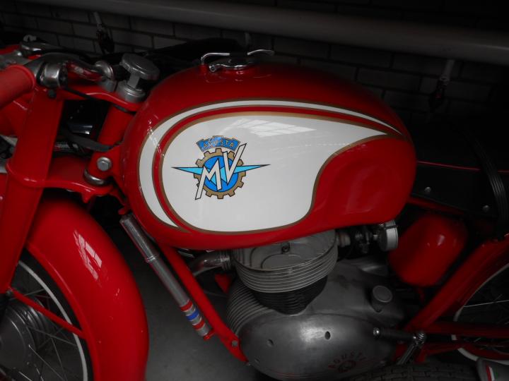 Zeer fraaie, goed lopende 1962 MV Agusta 175CC. een paar jaar geleden perfect gerestaureerd. Een geheel originele Italiaanse motor. Grote keus in motor- en bromfietsen in de Stolze Collectie!