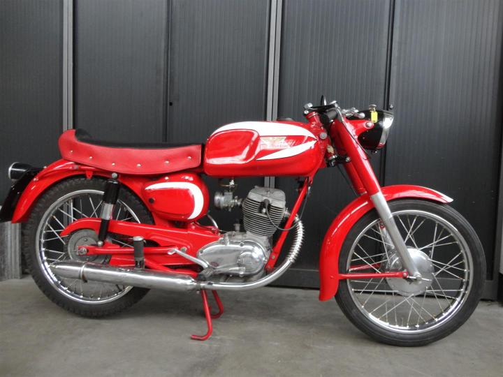 Een perfecte 1968 Moto Morini Corsaro Veloce 125 CC. Heel mooi en hij loopt perfect. Deze prachtige motor komt met Duitse registratie. En hij staat hier rijklaar voor u. Grote keus in motor- en bromfietsen in de Stolze Collectie!