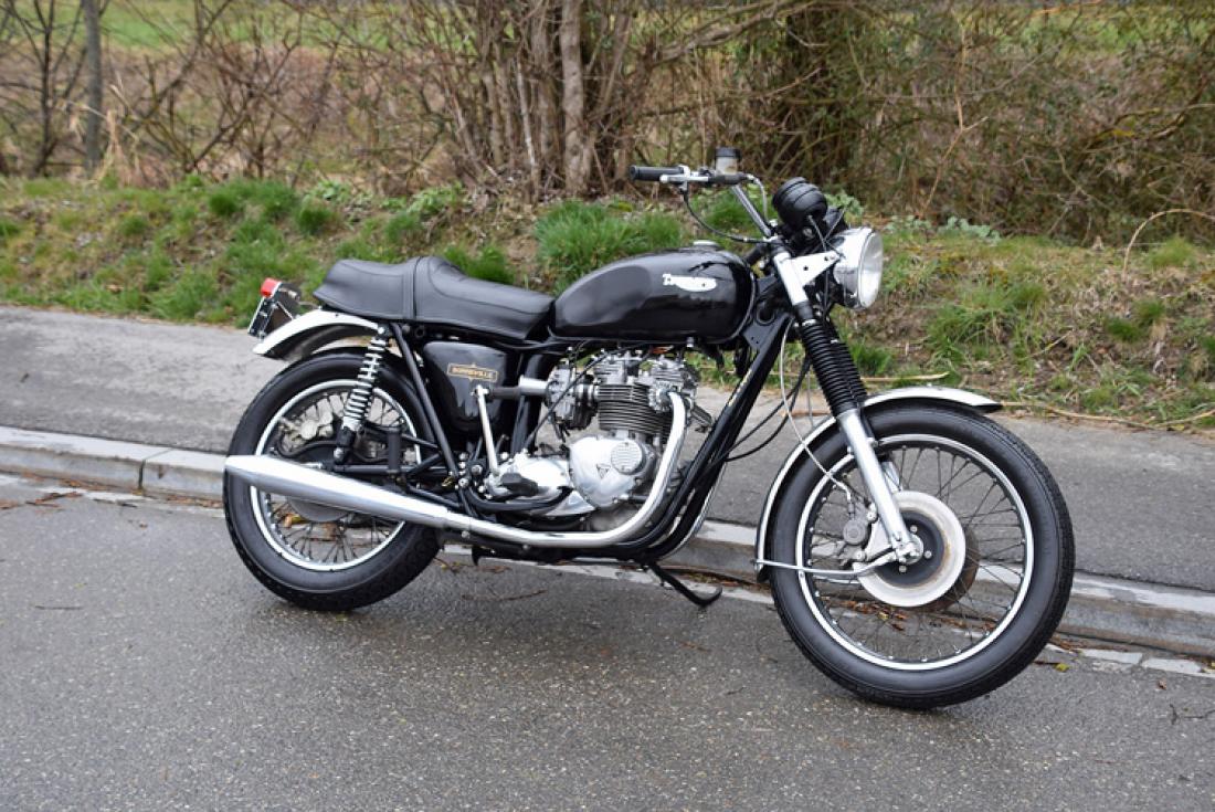 Since 5 years at the second owner. Engine recently overhauled. Electronig ignition and MKZ carburettors. Recently overhauled AP front double disc brakes. Iconic british motorcycle in very good condition. Last Swiss MOT in March 2018.